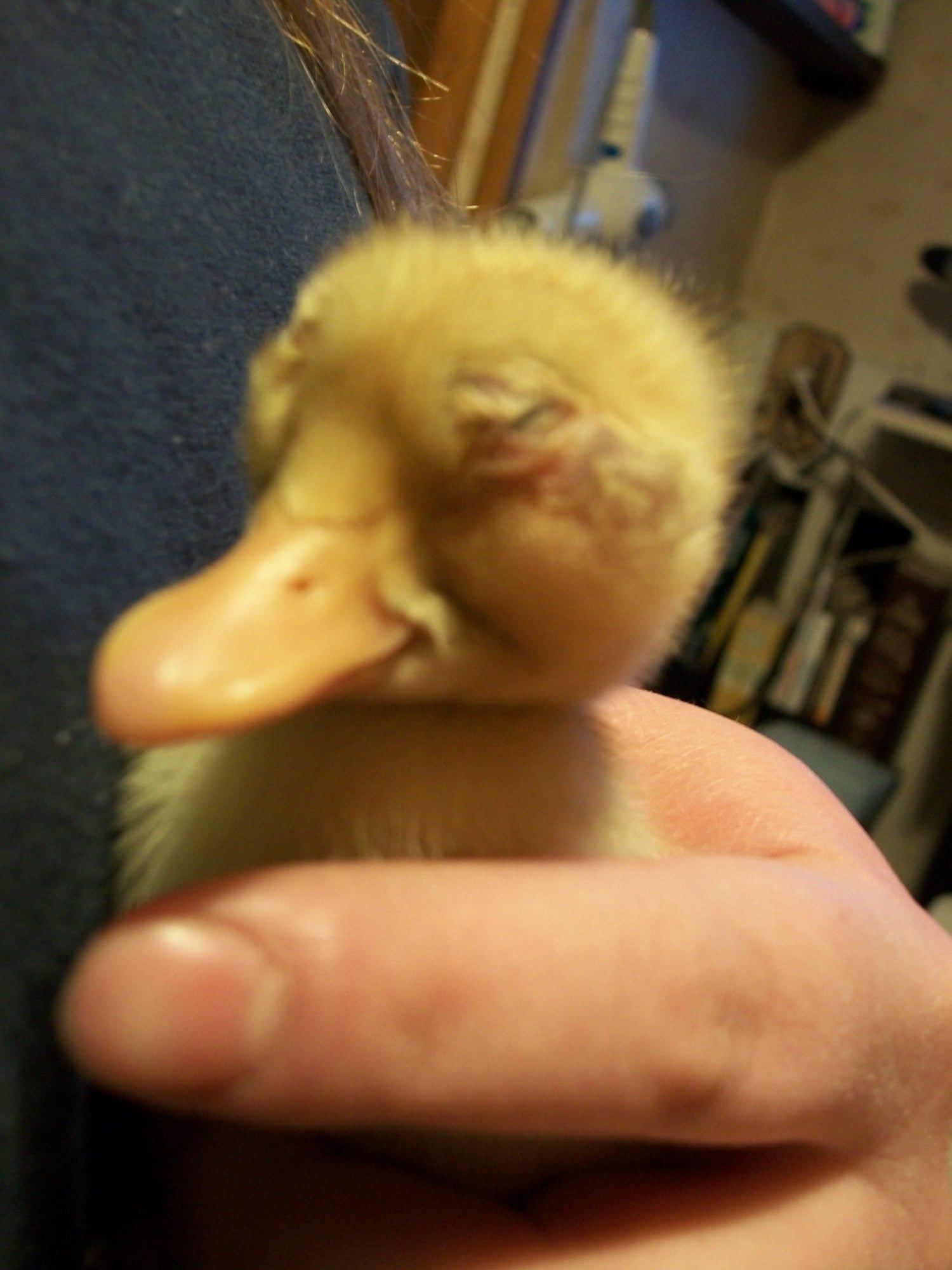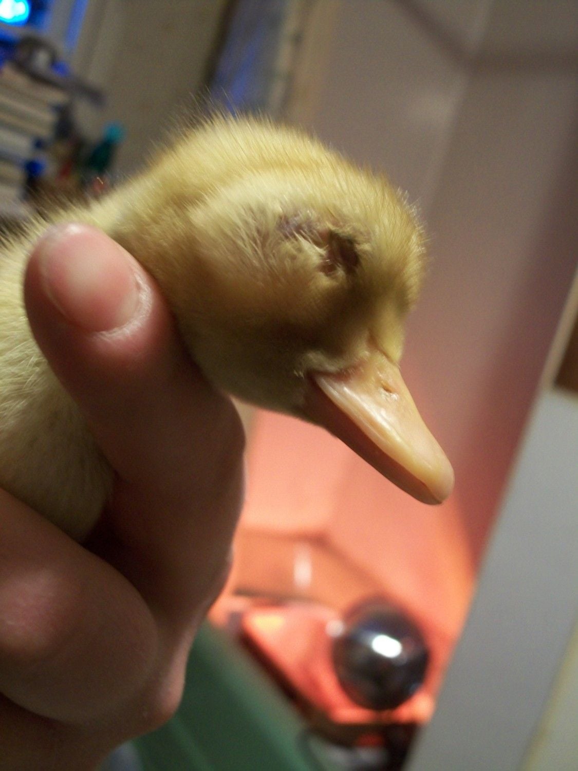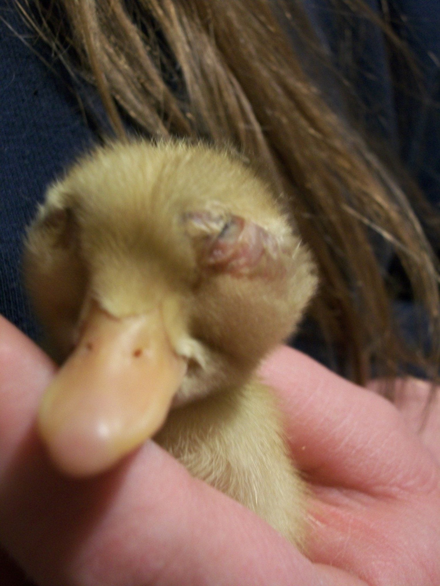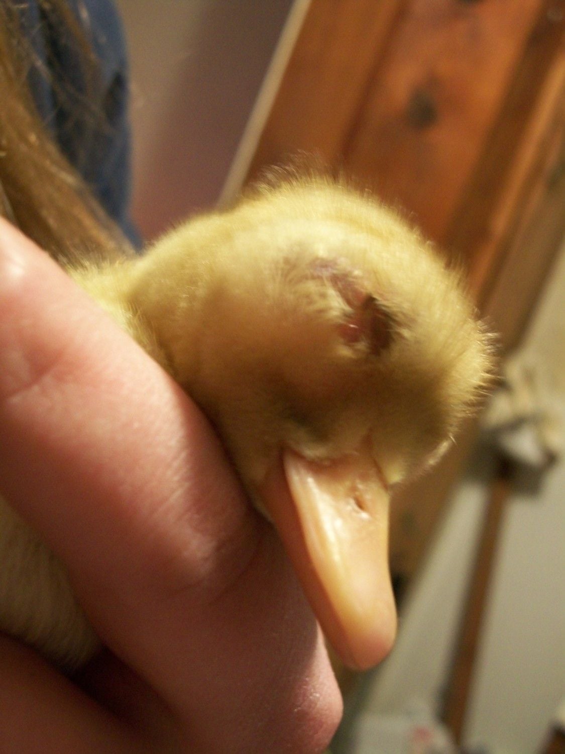 I am trying to help a baby duck out, but I don't know what to do. This duck is retaining fluid in his face. One eye is sealed shut - the eyelid only opens in the corner. The other eyelid is open, but there is fluid and tissue occluding the eye, so he is essentially blind. I have moved the eyelid around a bit, and there is an eye in there. Both eyes have tons of fluid under the skin below the eyes. He does not appear to have infection (yet). He is eating and drinking. I am worried that the fluid will continue to put pressure on his head, and that he will die from it, or that he will get an infection as he can't open/close his eyelids. I have been trying a warm compress every few hours, but very little fluid is drawn out, and it only comes out of the "open" eye. I also am giving him ophthalmic eye drops twice a day, but I don't really know if these are in the least bit appropriate or effective. I don't have any antibiotics for eye application (ie. terramycin) at the moment.
