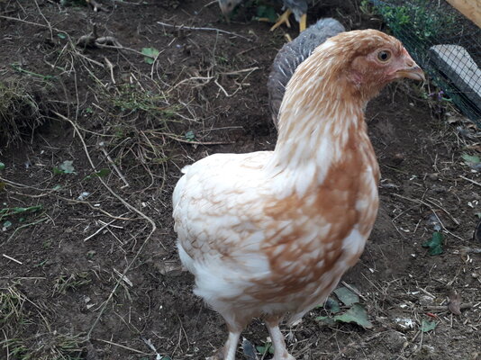13 - This one is I think almost certainly a pullet, although it's the only one that pecks at my hand from time to time, nothing serious but shows her attitude...