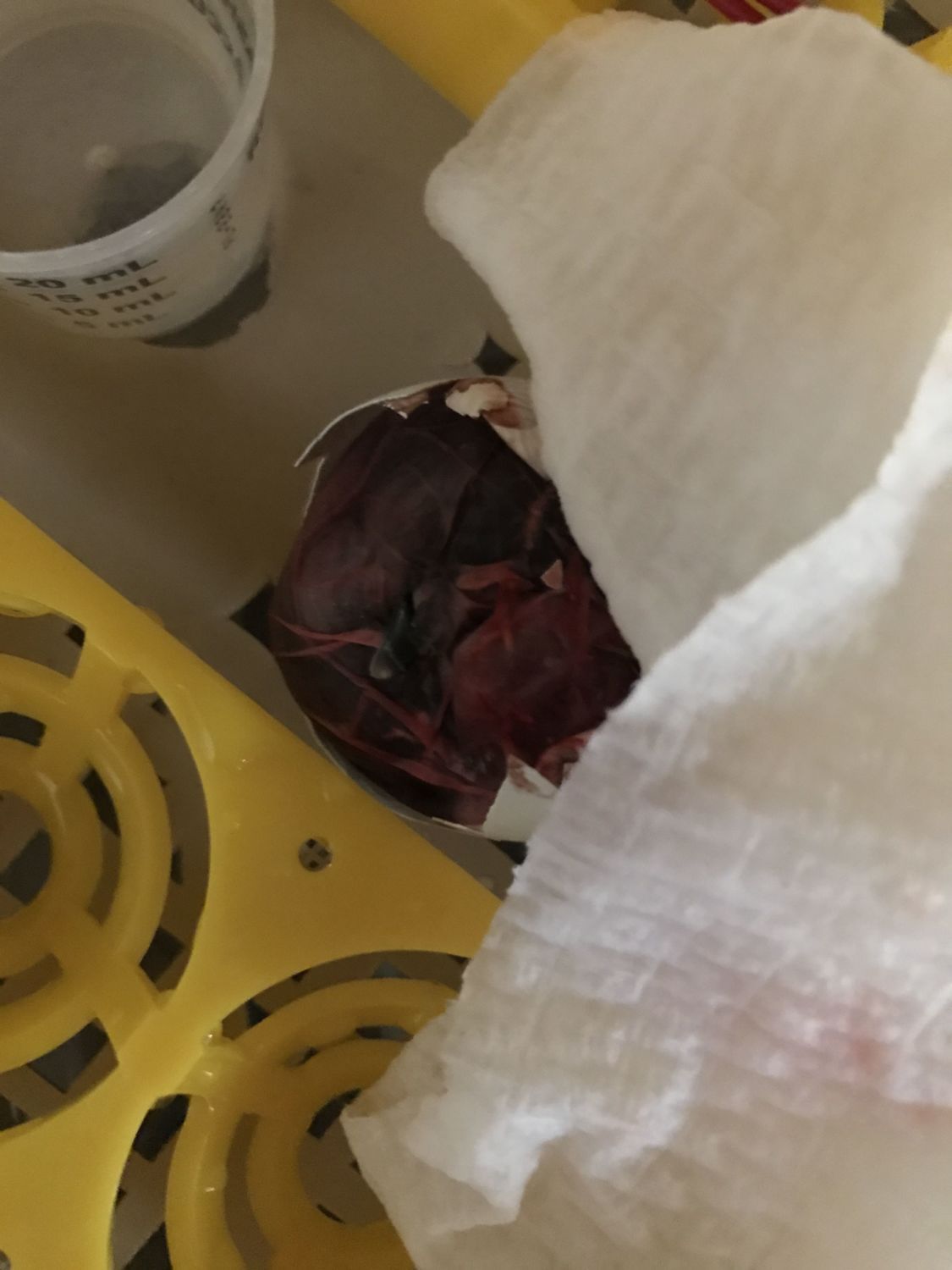 This egg was in with my broody and other eggs. 5 chicks have hatched and this one accidentally got a hole in it 2 days ago it bleed a little but stopped and mom and chicks all left it be until today. I walked in and they are all tearing the egg apart. So I took it and put it in the incubator and upped the humidity. I have it wrapped in a wet paper towel. At what point should I do anything else? It's breathing but not chirping.