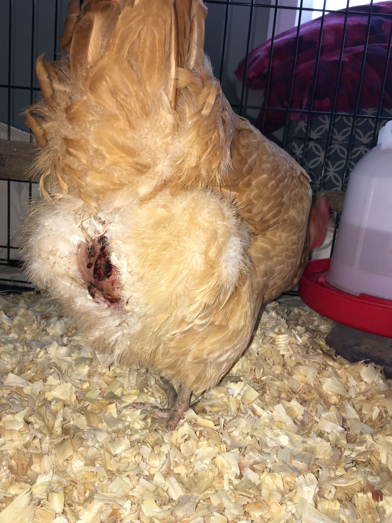My 9 month old buff orphington is bleeding and missing feathers from her bottom. I believe the bleeding was caused by other hens pecking at her because her bare skin was showing maybe? She still has an appetite, still drinking and acting normal. Hasn't laid an egg in the past 24 hours that I know of probably due to the stress of me bringing her inside But other than that she is acting normal. I brought her inside and out her in a crate to avoid any other hens pecking at her. I have cleaned her bottom with antiseptic and put neosporin on around it. I plan on bathing her to clean her up a little better too. Has any one else had this happen before? She only missing feathers around her bottom and I'm assuming other chickens noticed her bare skin and just started pecking. Any advice or help would be appreciated. This is my first flock.
