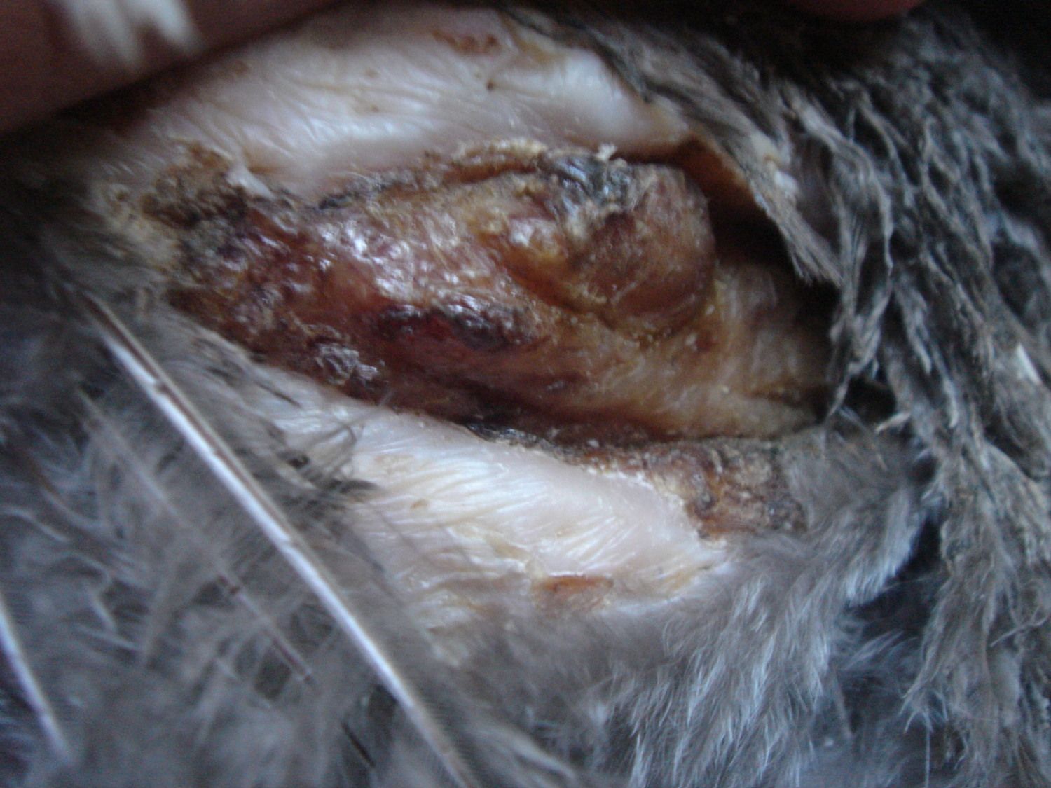 I don't even know what I'm looking at here! I've never dealt with any wounds on my chickens. Is this something I need to sew back together? Is the brown part dead underlying tissue? Is it a big scab? If I move the skin to the side, it's almost like I can see inside of her.