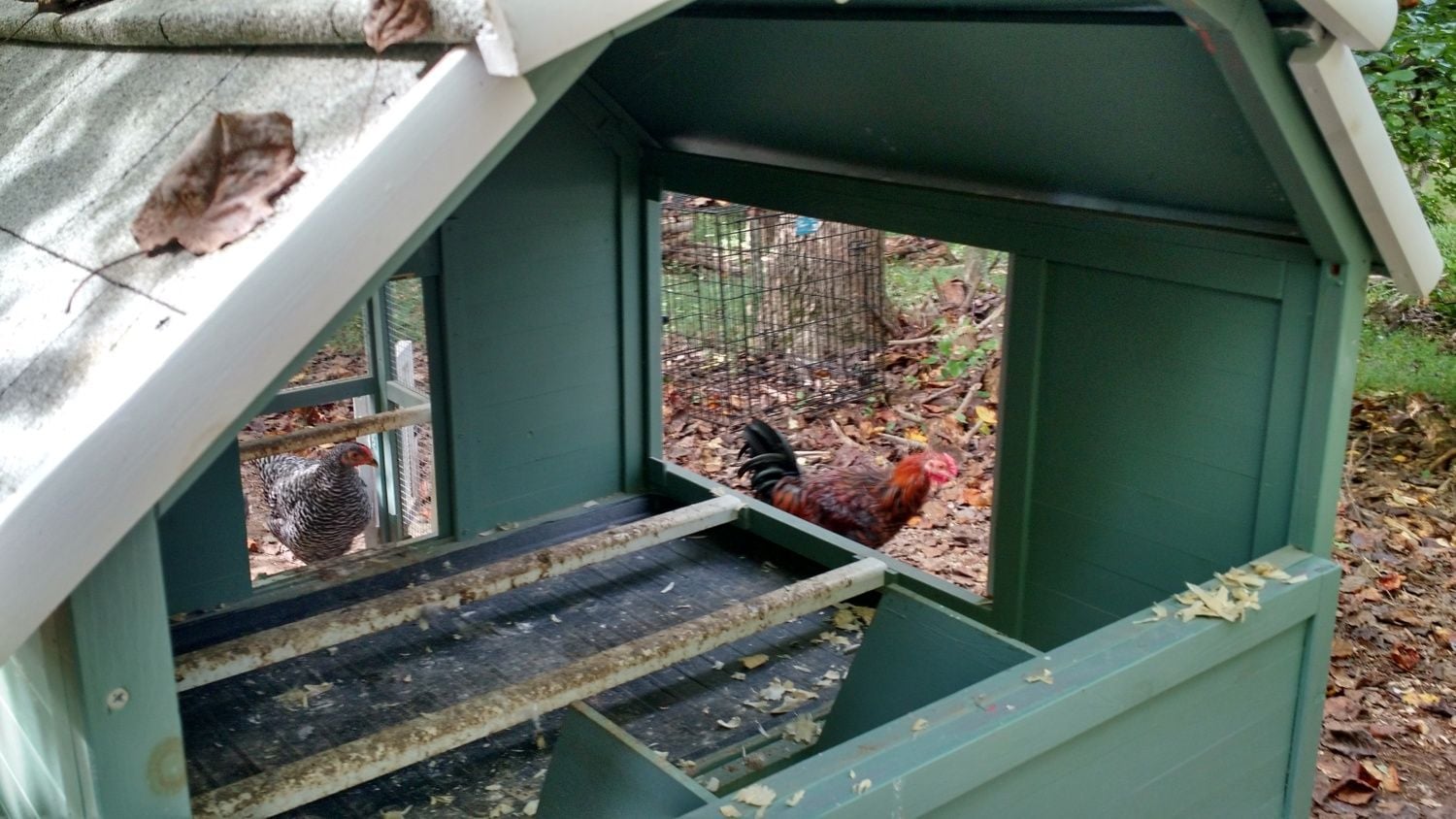 I have a similar prefab and did the same with adding higher roosting bars. But I also took the nesting box door off....made my own external nesting boxes to make more room inside and re-used the nesting box door! I also made two extended rooflines over the windows so they could stay open all the time with our Florida heat and keep rain out. I should have just built my own coop! Lol