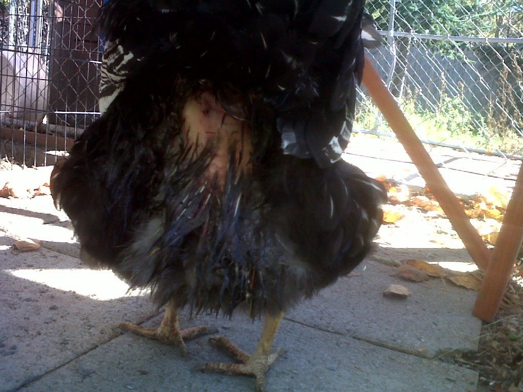 i went out this afternoon to do the usual water change, treat time, collect eggs, etc.. i noticed one of the two chickens we have wasn't coming out of the coop to say hi so when i opened the door to check on her i noticed there was blood splattered everywhere. she was laying down looking exhausted, so i picked her up to see where it was coming from and noticed her behind. i cleaned her off a bit, took the picture, and came here. she was out and about yesterday and i didn't notice anything....how could this have happend so fast and what the heck is it and will she be ok? !