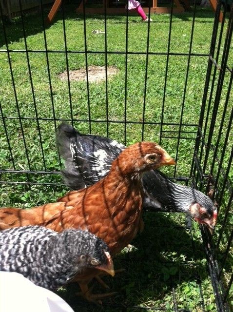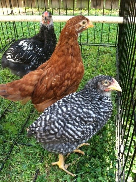 We bought three "pullets" from a feed and seed store back in March -- a Rhode Island Red (center), a Dominique(up front), and a Silver Laced Wyandotte (in back). 6 weeks later, "Dot", the silver laced wyandotte, is 20% bigger than the other two. "She" is also starting to be very bossy - chasing the other two around. And has developed a darker red comb and wattles. I'm afraid its a rooster...... What do you all think?!