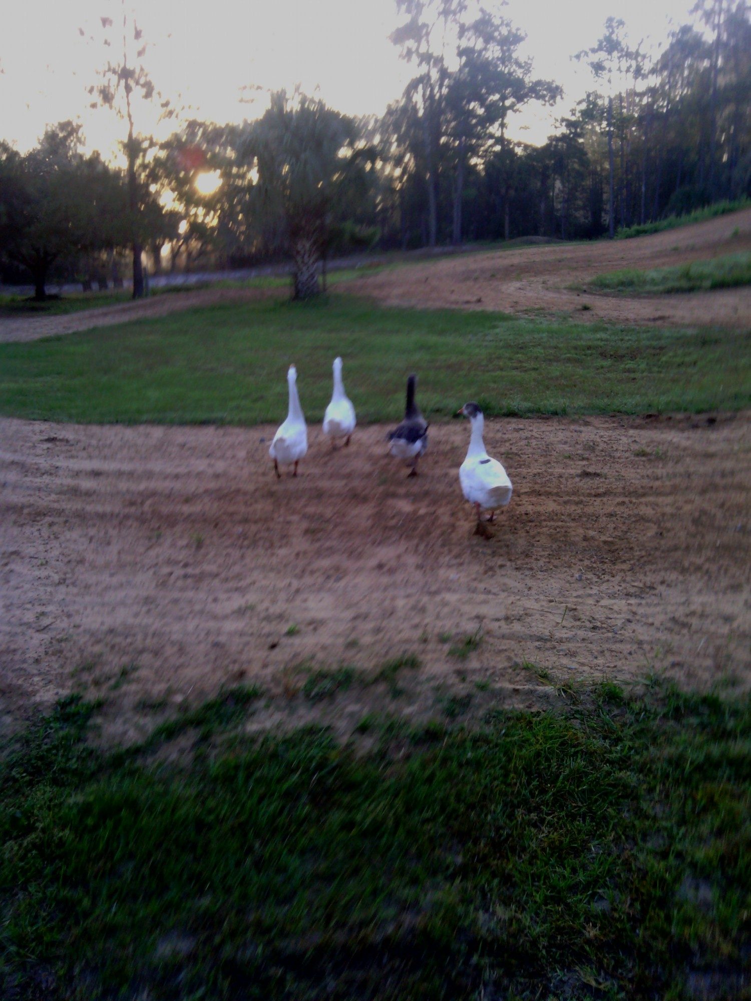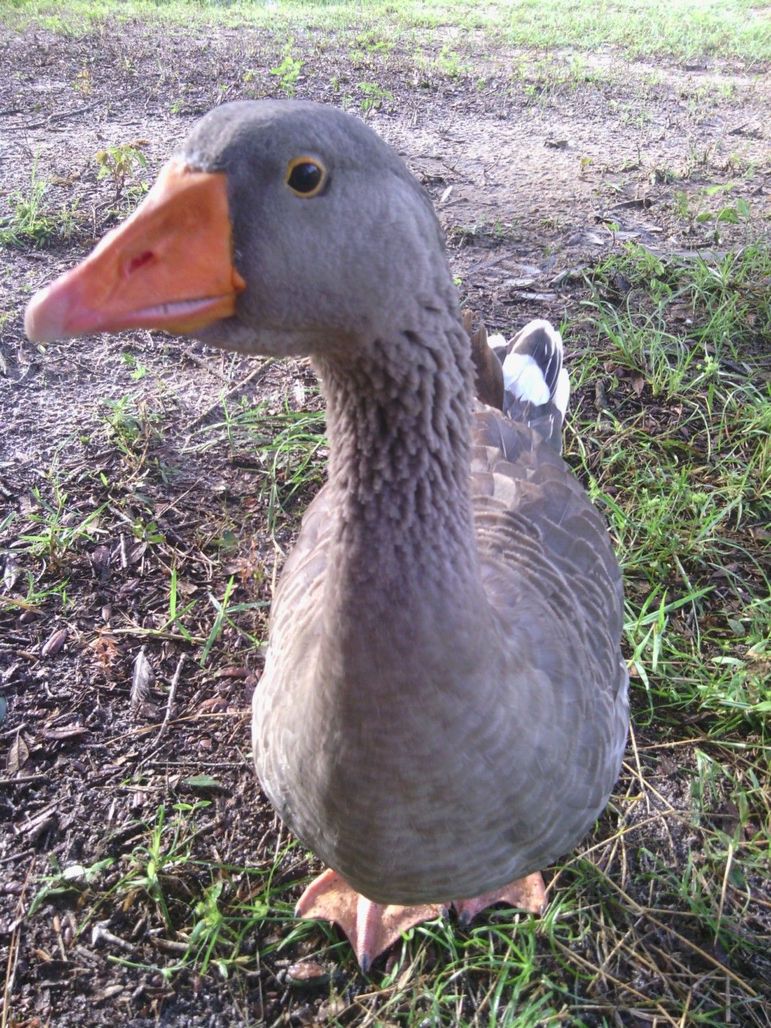 I have 6 geese. 3 white Chinese, 2 that look like this fella, and a white/brown that I'm not sure of breed. This one is my favorite. We call him Biggun'. Am I correct that he is a Toulouse goose? We refer to him as a "he", but I have no idea what sex he is. If "he" lays eggs in the spring I guess I will have to call him "biggunia" LOL. In this picture he is almost in my lap for his daily petting and conversation. I don't know what he's saying, but he carries on like an old woman! What is cool was when we bought him from a local guy he was MEAN, but after spending time with him he is friendly as can be.