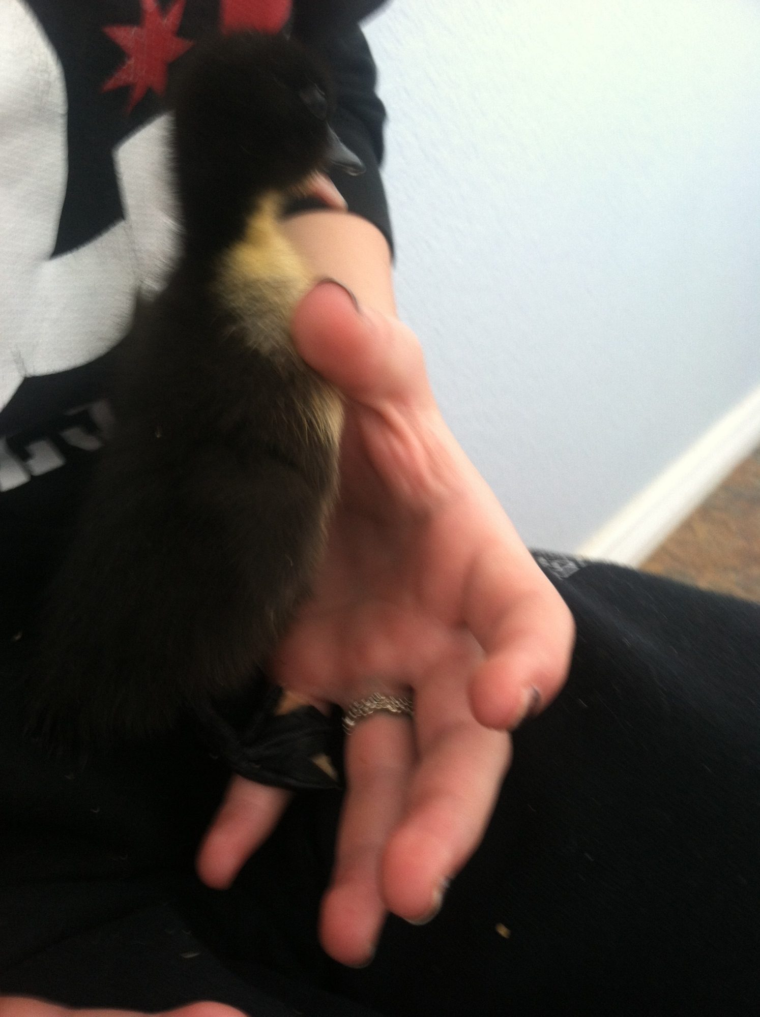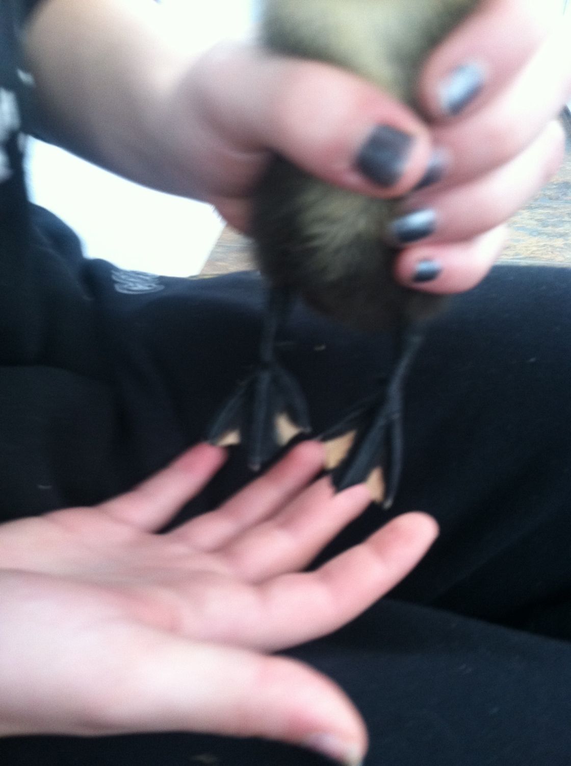 Duck # 2 Is Black with some yellow on his chest. Feet are black with light spots on feet.