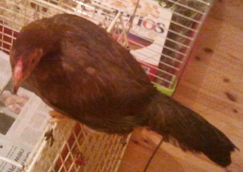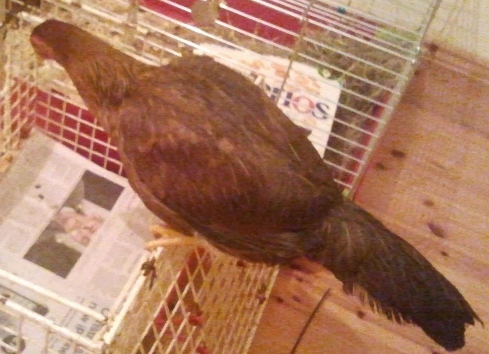 We just rescued this hen wandering around lost in my nans backgarden in the city, guess she was a pet, my other half is a vet nurse in the local vets where she was found and hasn't heard anybody ask about her, so she's moved out to the country side with us now! Neighbors have some hens and a rooster, so she's livng with them now.