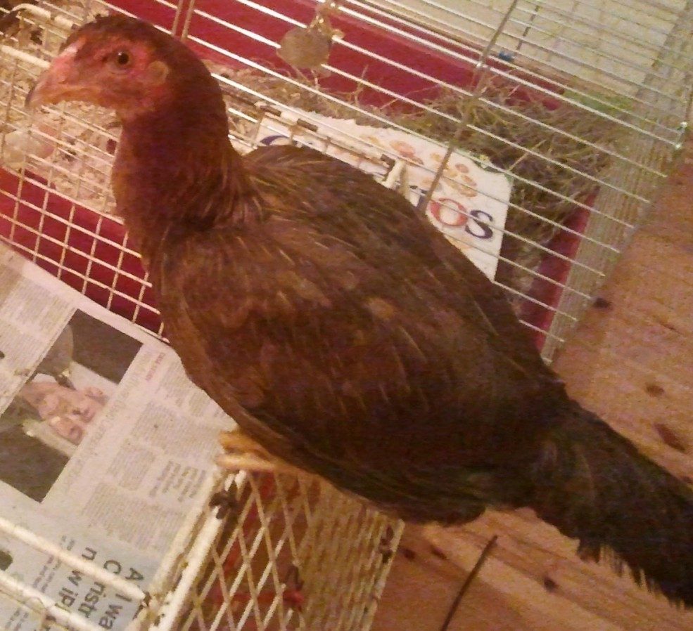 The hens/rooster she's with are just standard chickens, (I think) road island reds (look like this?) .