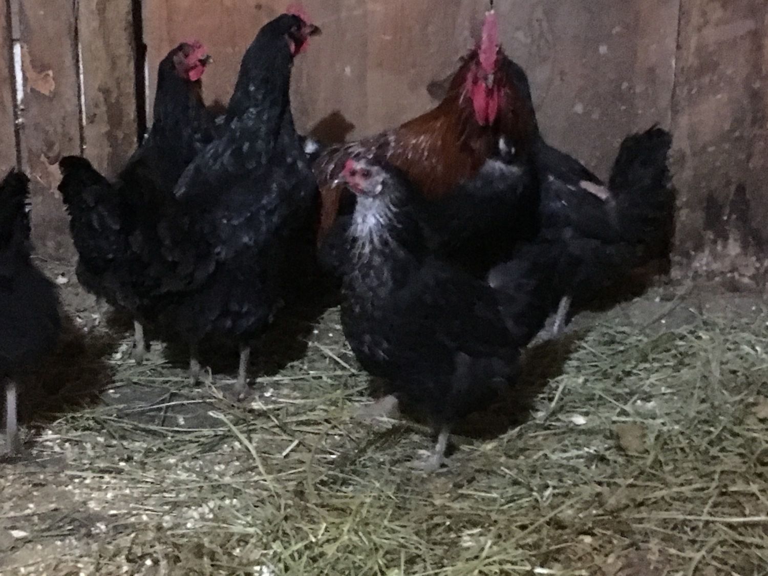 You do have a pointThe hens look solid black to me, so unless I'm missing seeing some reddish/copper colored feathering around the neck area, they appear to be Black Australorp hens. The rooster is not a Welsummer with those slate legs as Welsummers have yellow legs, but it does look like a Black Copper Marans. The French SOP for Marans calls for feathered legs, but the English SOP for Marans calls for bare legs, and hatchery quality BCMs here in the USA sometimes lack leg feathering.