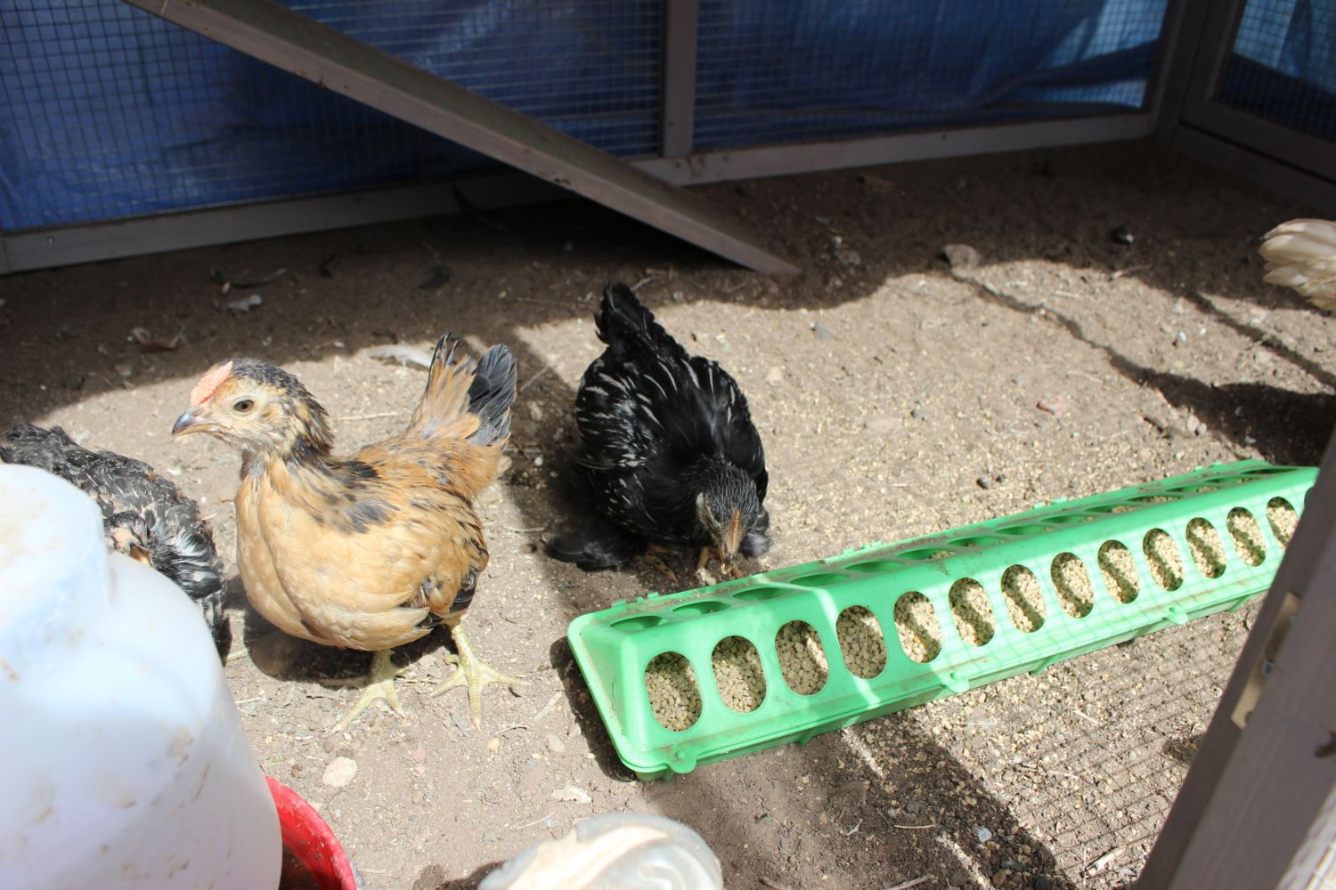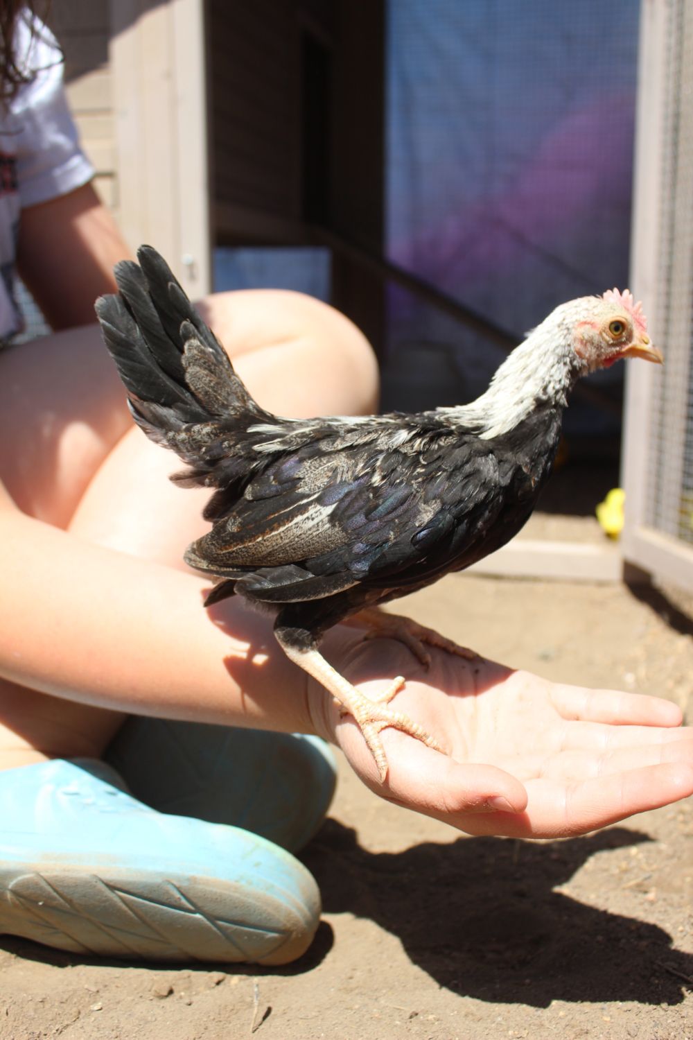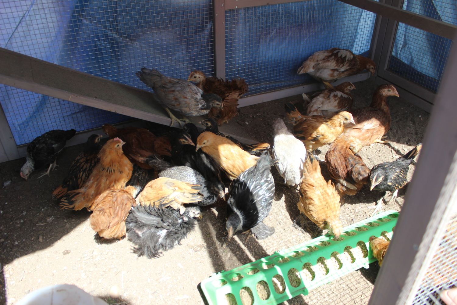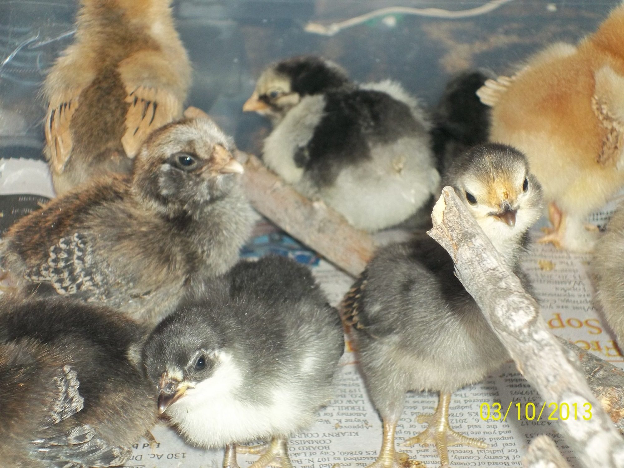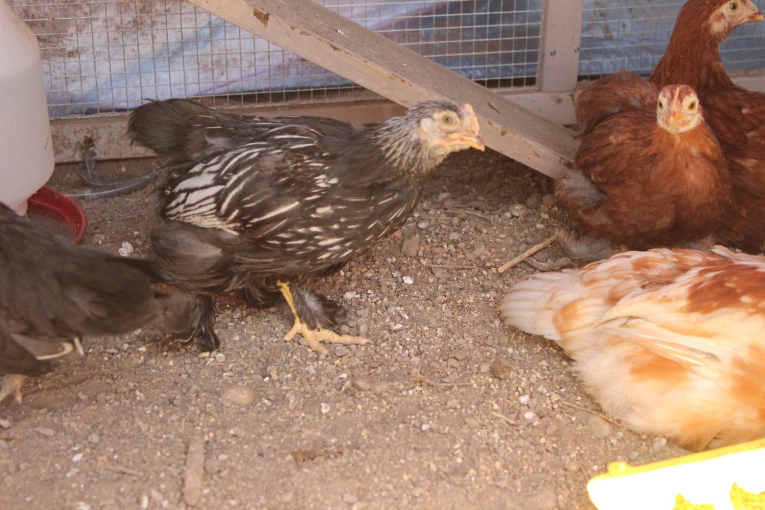 Here are some better pictures of some of the chicks. They are still a bit skittish so hard to get pics of them. My daughter had them all stirred up.