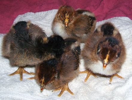 Most are EEs, Blue Ameraucanas, etc., but there is also a Barred Rock, 1 Barnvelder, 1 Dark Cornish, 2 White Orpingtons, Cuckoo Marans and Black Star. And to add to the confusion the hatchery also threw in a couple extra chicks so they could be anything.
