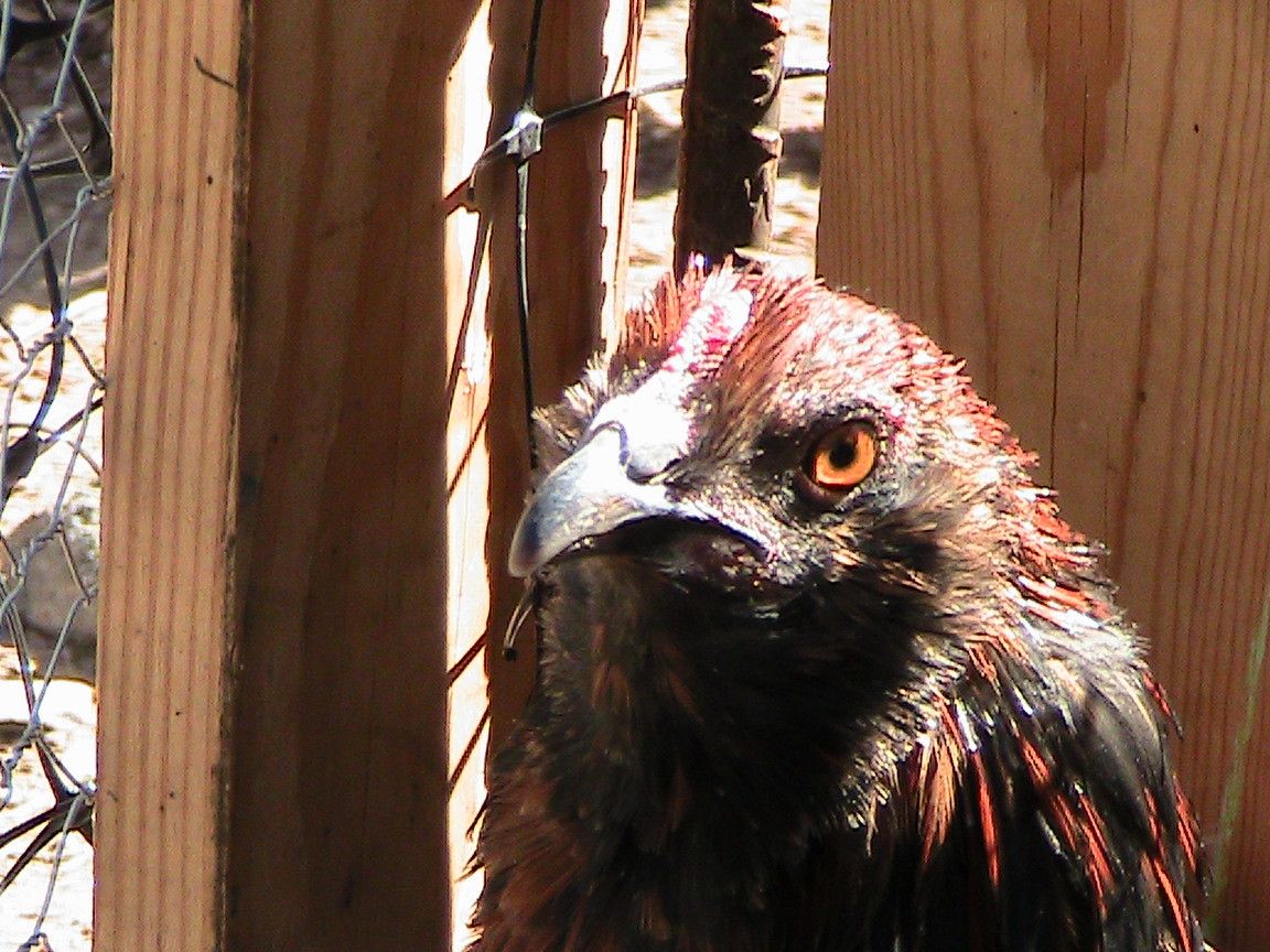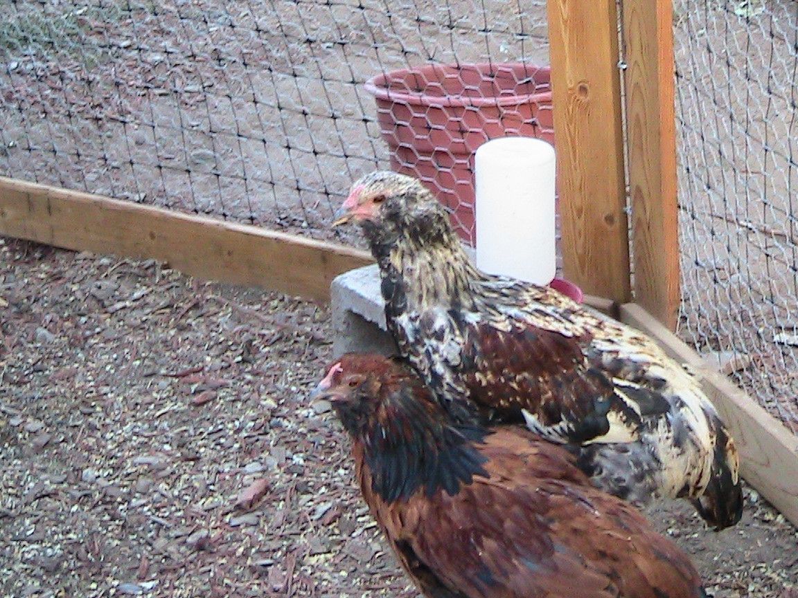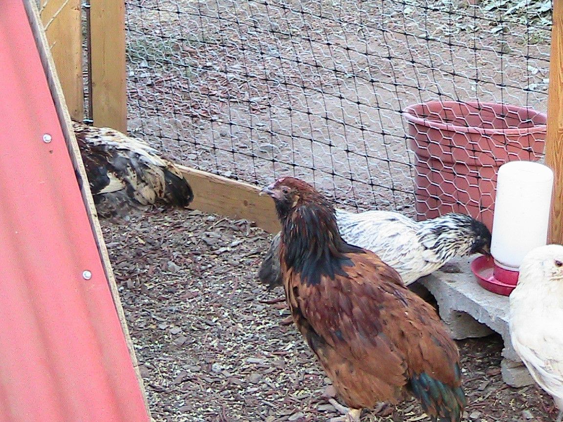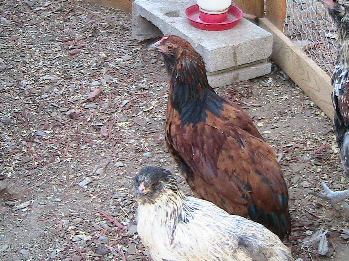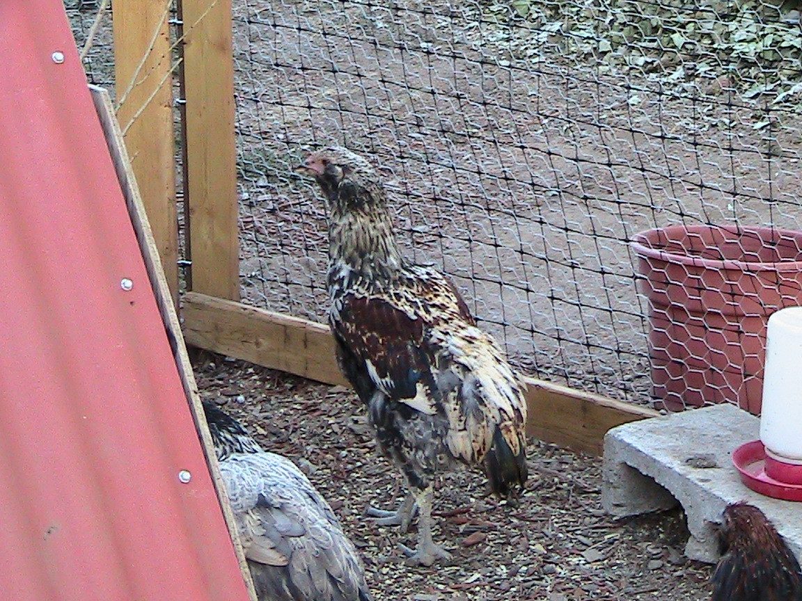 This is my first time raising chickens. I have two that started crowing this week (at about 4 1/2 months of age). The other four are significantly smaller and have different markings on their faces. Nobody is laying eggs yet, and I'm reading that sometimes hens crow if there's no rooster in the flock. Anyway, here are a few pictures I managed to get of "Candace", who sort of struts around and bosses the others around. I'm not sure if the other one is just crowing because Candace is or if s/he is a rooster too. One or both will likely be dinner soon if they don't pipe down (I live in the city limits), so I'd like to be sure.
