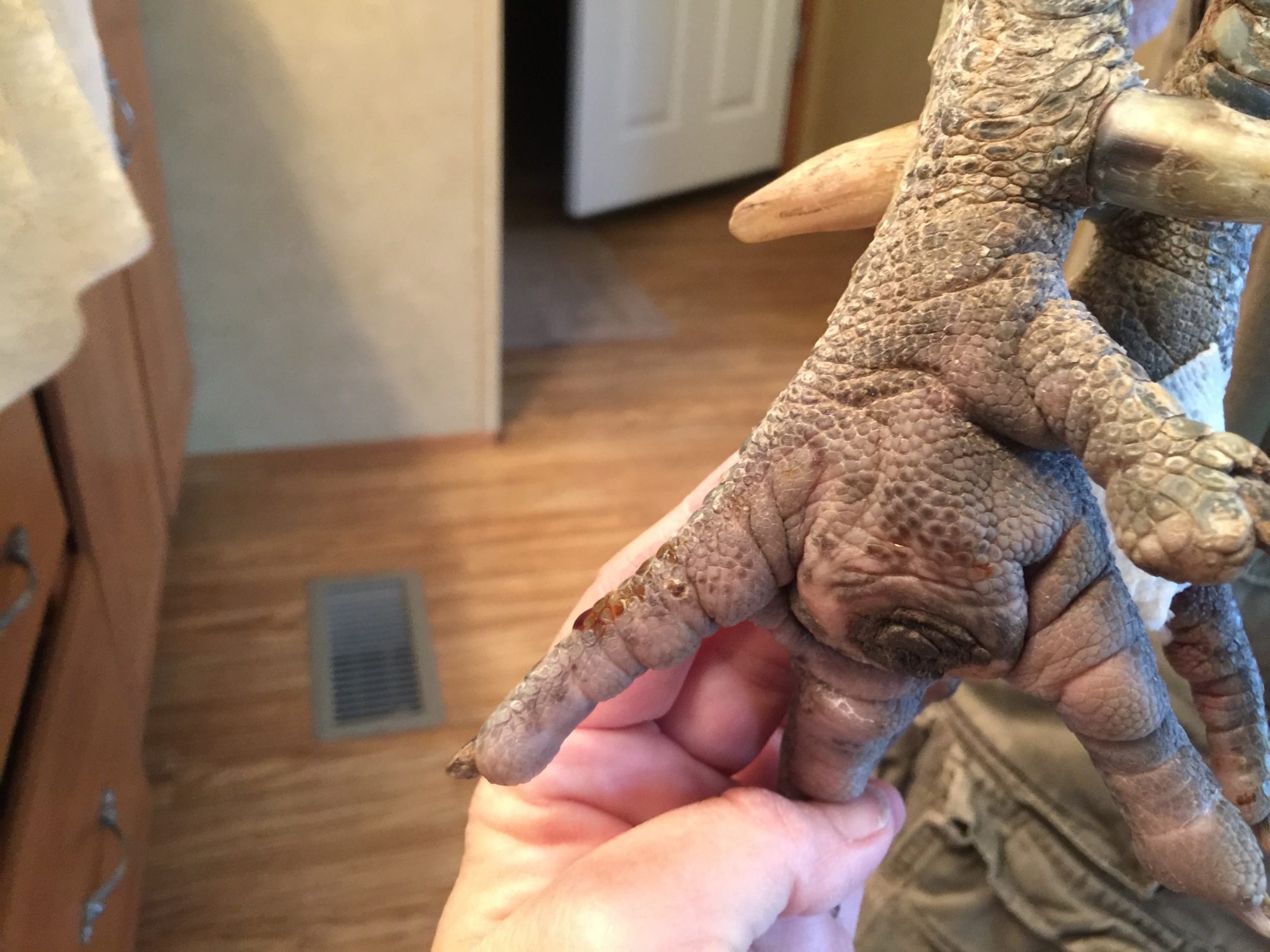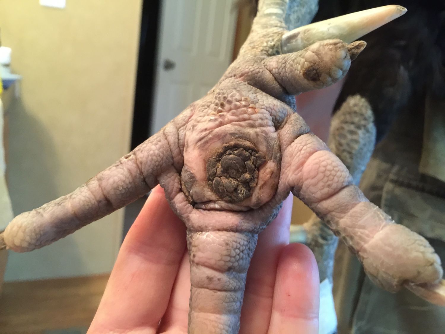 Very new to chickens and the like and I see your hand and I see the claw in your hand (almost the same size)and the spurs!!!!! and I wonder what kind of bird that is...? Emu?