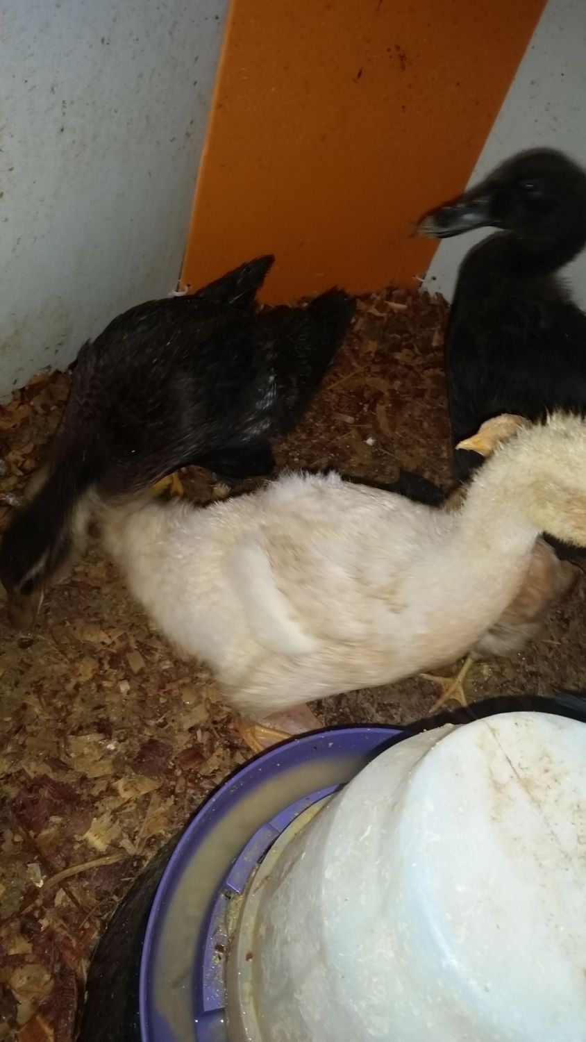 Cute lil ones, I have never put BY in water but I have read of others doing it that way I always just sprinkle 1 Tab to 1 cup of water. when young. Looks like what your seeing is blood feathers coming in on your Cayugas. Same as what's happening with your Buff but more noticeable on a blk duckling. If you look close can you see new feathers coming in? they will fill with blood and they will be their flight feathers. One reason why they get heavy and they have to build muscle to hold them properly. I have been feeding FF for 2 yrs now will never go back to reg feeding. my flock love it. I use Sally Sunshines method.I managed to get some ok pictures. The buff duck and her wing...which currently looks normal. Hard to tell since she is getting her buff colored feathers. And, then 2 pictures of the rouens wings. The cayuga's wings looked very thin and fluffy at the ends. With the BY, It seemed to collect at the bottom of the waterer I am using. So I ended up putting some food in a little bowl with a decent amount of BY mixed in and let the ducks eat it that way. I'll figure out a better method this weekend. I also researched fermenting feed today....so it seems that adding the BY that way will be the most beneficial. Here are some pics!