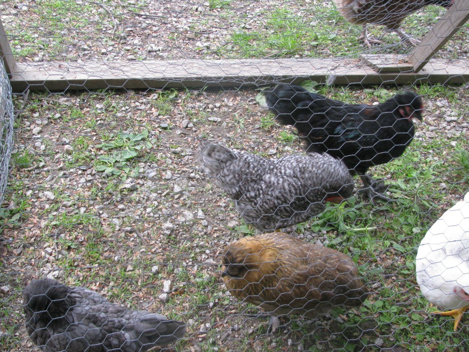 I have 3 pullets of mixed breed and I am a bit curious as to what they might be? The black one, the brown one, and the dark grey one in the corner.