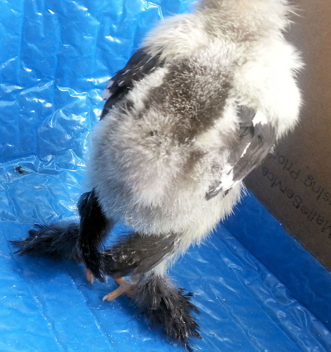Here are a couple pictures of the one, the feathers on their upper legs are very long, and actually cross each other.