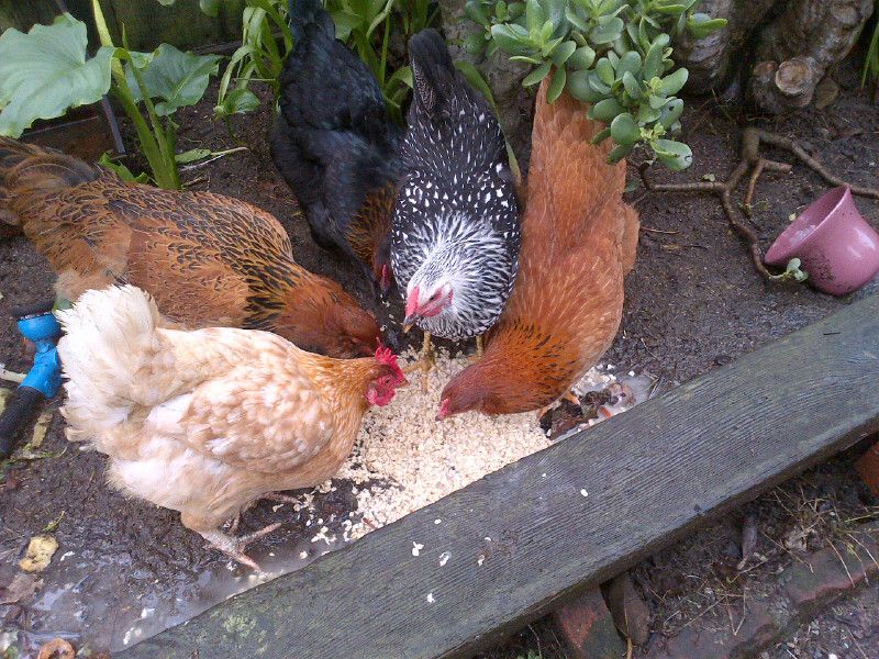 The bird on the far LEFT I got from someone that had unintentionally neglected (they would go without water for days at a time on many occasions). I was unable to get any info on how old she is or her breed. She stopped laying because of the season but she did lay brown eggs. She is rather small and if you see on a later pic she has a patch of fur missing on her bum. She was like that when I first got her and I thought at first it was from the molt or because of picking on them from the stressful environment I rescued her from. However, its been well over 2 months and the feathers haven't grown back. Did anyone experience anything like this before? She has a healthy appetite and is an extremely sweet girl as well.