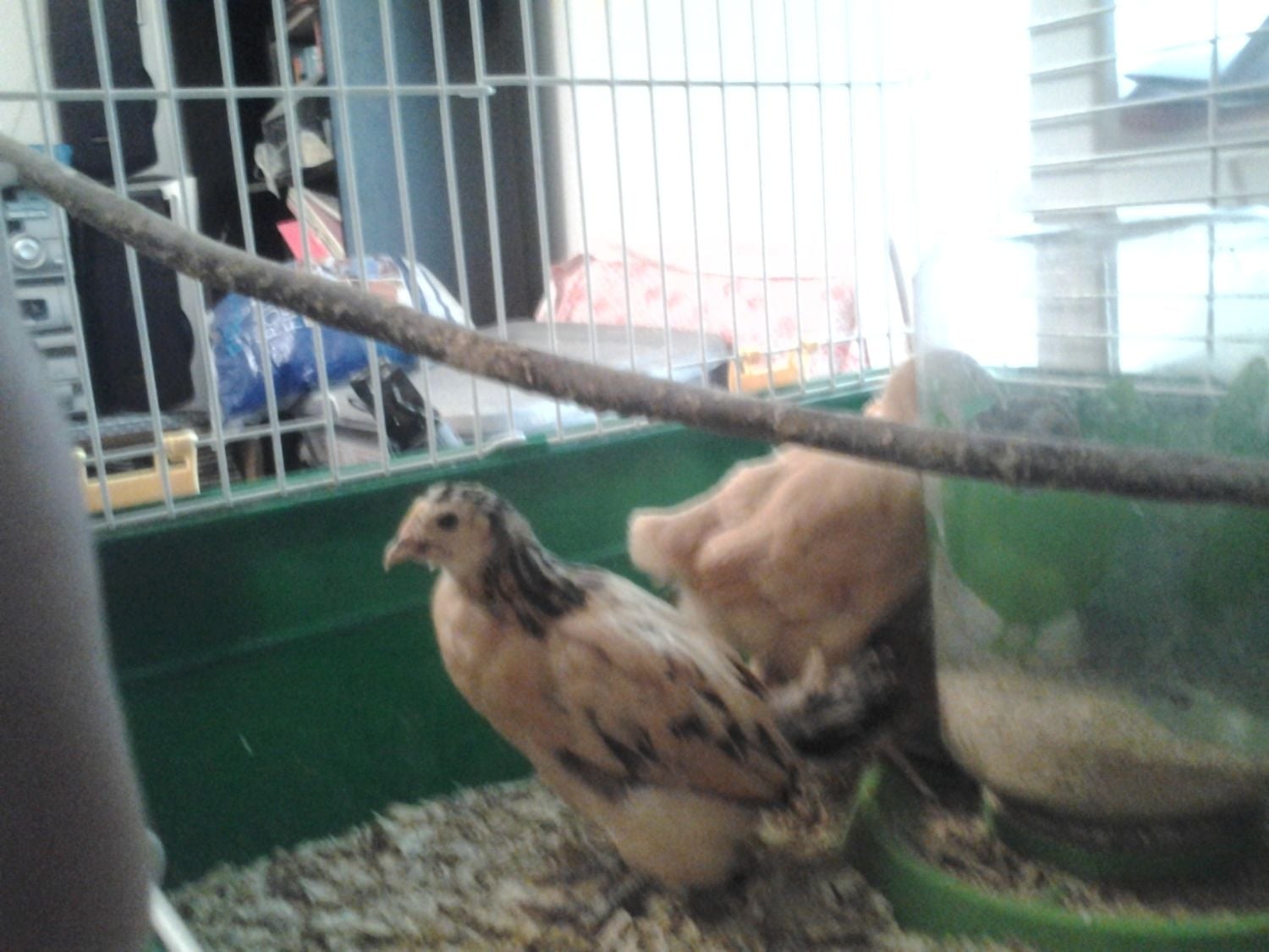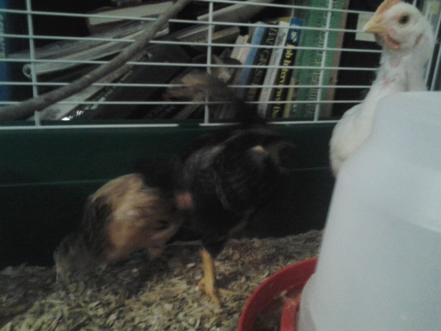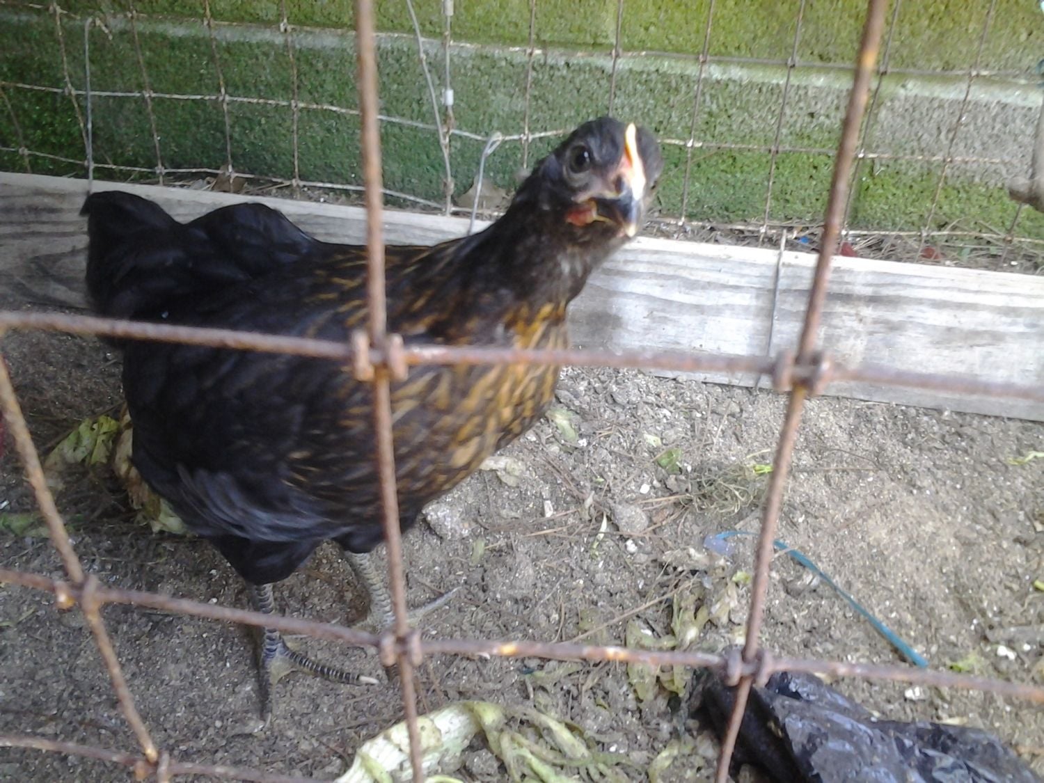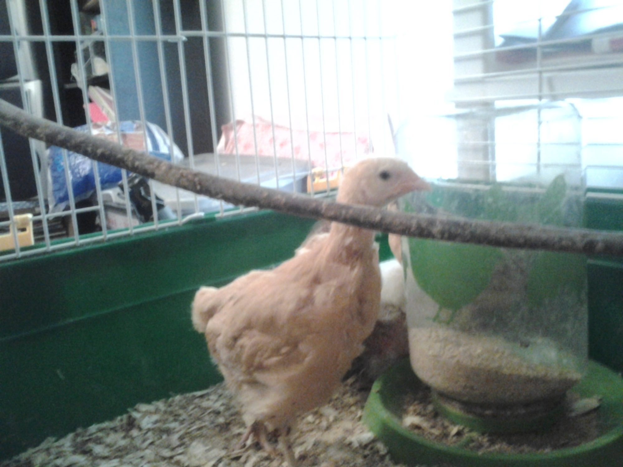 Hiding in the back is Chicken Little (couldnt get a pic of her sister, Chicken Big, she was hiding too) - I believe they may be Amber whites, possibly, maybe?