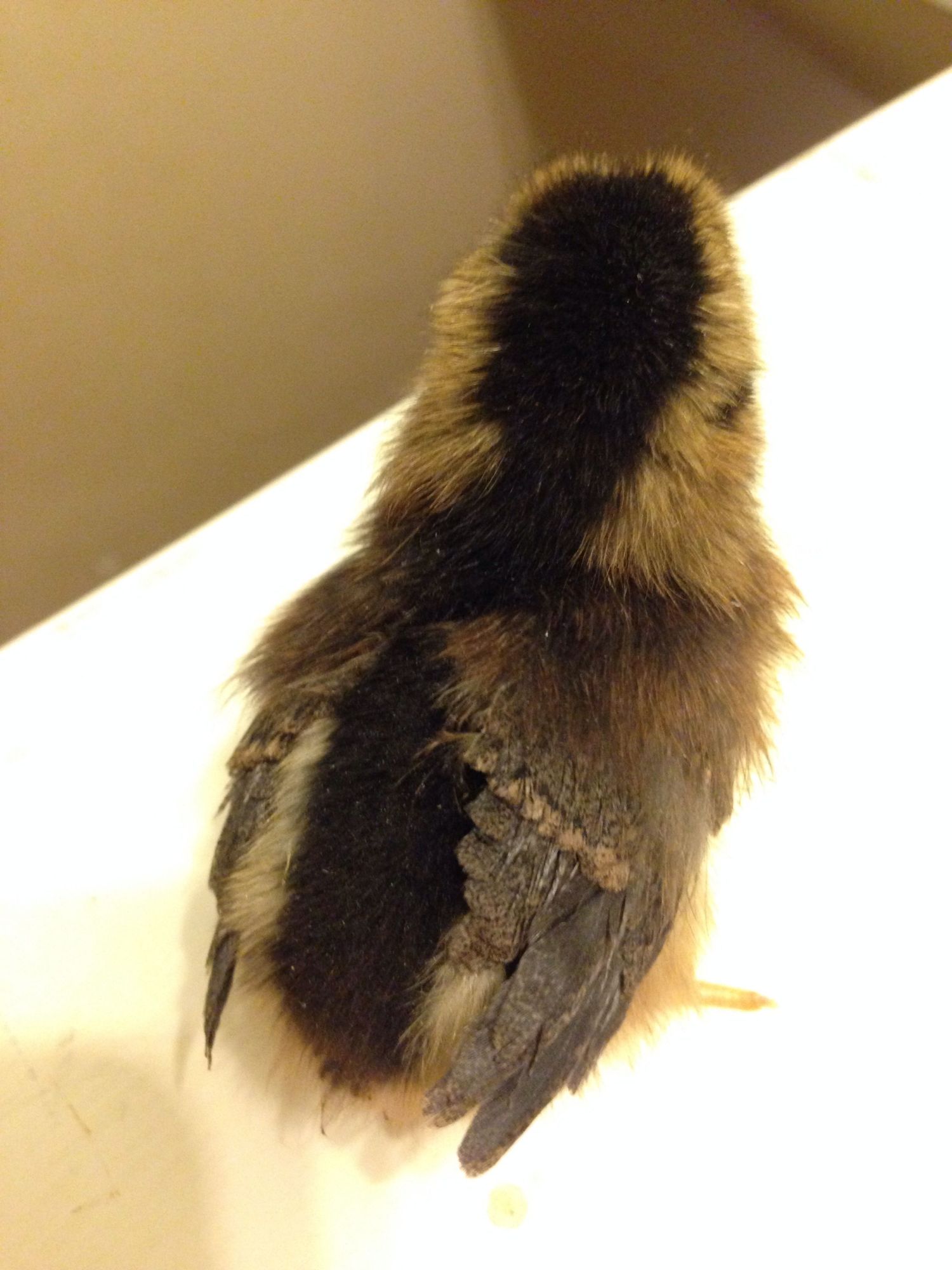 This is Brownie, our new baby Brown Leghorn. I happen to think Brownie is possibly the cutest baby chicken on the planet. She's from a local feed store, and I believe she came from McMurray Hatchery. You can see by my choice of pronouns that I'm an optimist. Anybody see anything yet that would tip the scales in favor of Brownie being one gender or the other?