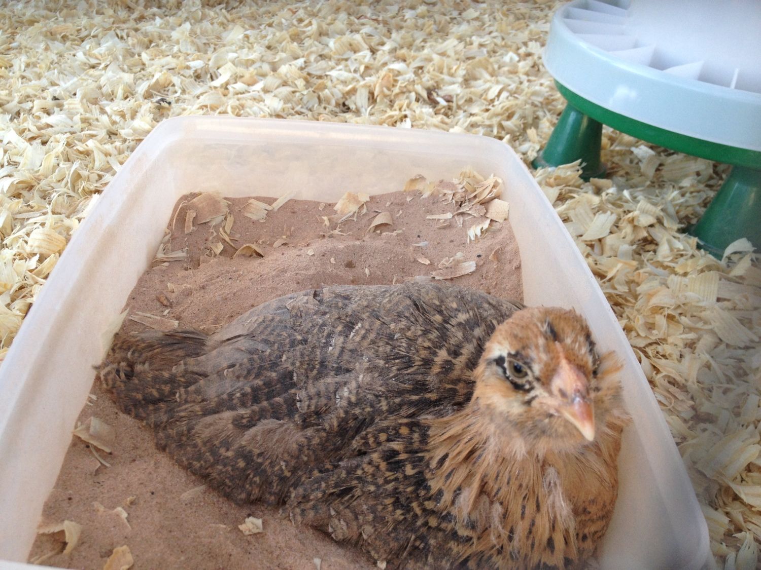 our girls about about 3 wks now and I don't have and I agree no smell. a tad of the dust but no smell. I would say maybe try using wood pellets for the bedding. Its super easy to clean. I will be moving ours this next week into a kiddie pool with a dog play pen around it. This will be in our mudd room.