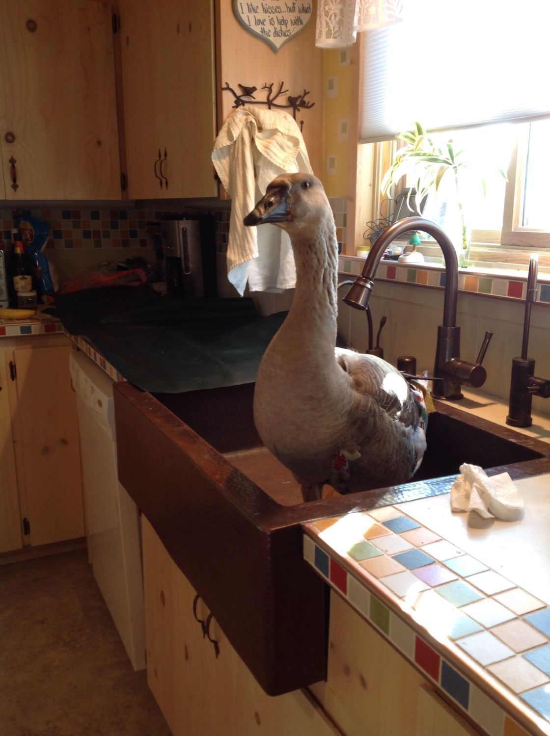 Lady Goo Goo laid her first egg on Valentine's day. A couple weeks later she went broody. Eventually she would lay a total of 11 eggs, but without a gander and no hope for goslings, we slyly collected all the eggs sometimes we would replace with ceramic eggs, sometimes not. I let her do her thing for a while and I missed her so much. After a couple months she had lost a lot of weight, was super territorial and grumpy with us. However, she always let my husband and I visit her in the nest. She even seemed relieved for the company and distraction. One day I realized she was filthy and I hadn't seen her bathe. So I cleaned the pool while she watched from the nest. We talked with one another the whole time. Then I put the ducks out of the coop and closed us in. Now it was just her and I, having some alone time. I sat on her empty nest and put her in my lap and started petting and cuddling like I had before the brooding. Soon she got up, but I stayed put, sitting on her nest as a surrogate. She took a full bath, preened properly, and ate a full meal. Then she came back to the nest and took over. We did this for a couple weeks, and sometimes I could coax her out of the coop, but she would become panicked if she moved too far away from the nest. Then one day, she spent most of the day out of the coop while I worked in the garden. I tried a couple times to bring her in the house but she panicked. After a couple weeks of this new dynamic, she asked to go in the house one evening for couch and bedtime cuddles. She's done this a few times now, but still not consistently. However, I'm now able to cuddle her and hold her lots outside. And I feel it's just a matter of time before she's back to being a "normal indoor goose". It has been harder to help her reestablish her relationship with my 13yr old and other regular visitors. She has nipped a couple times, something she didn't do before. But we have consistently helped people learn how to interact with her in this new phase. She's definitly more social than a month ago.