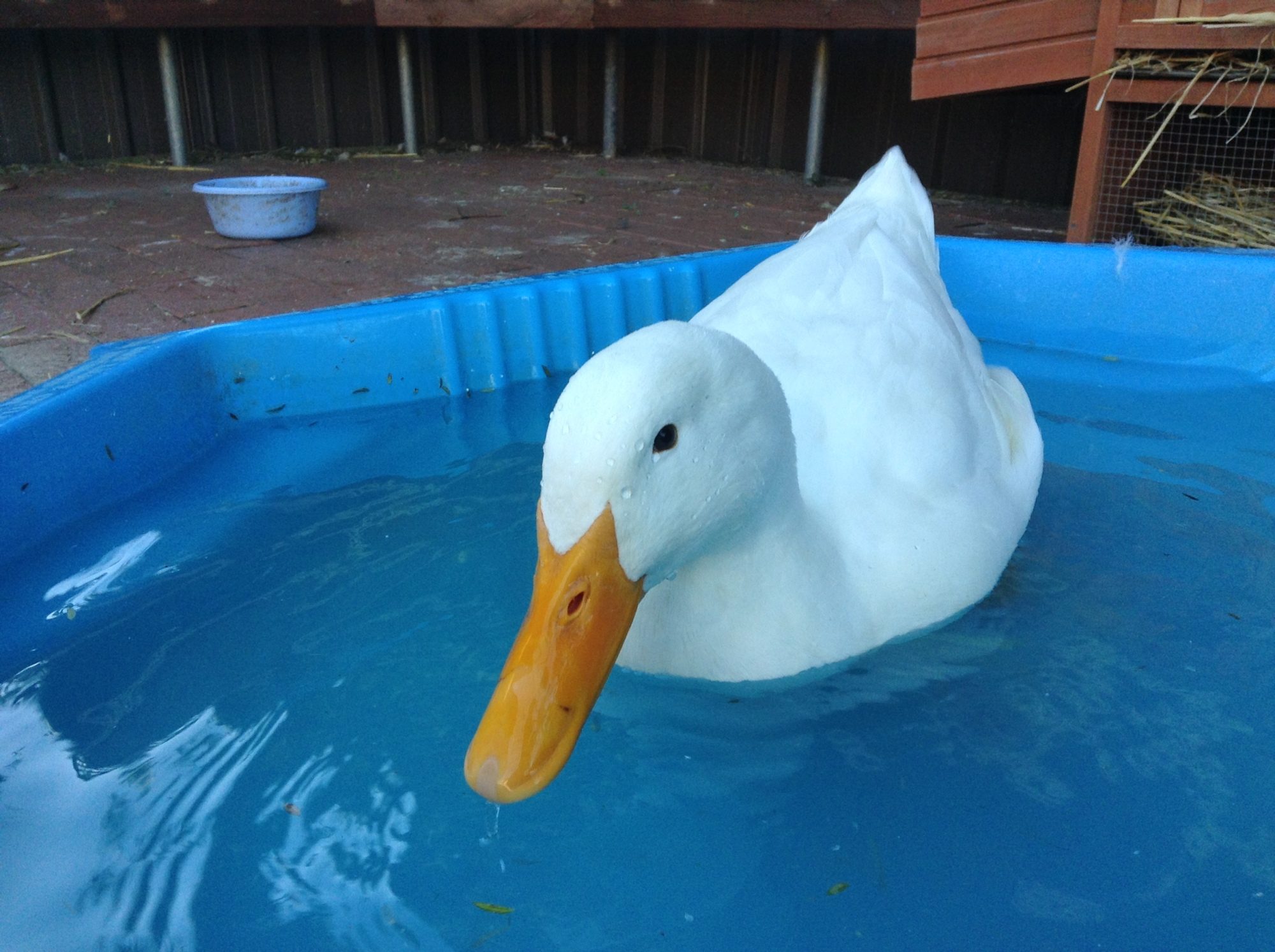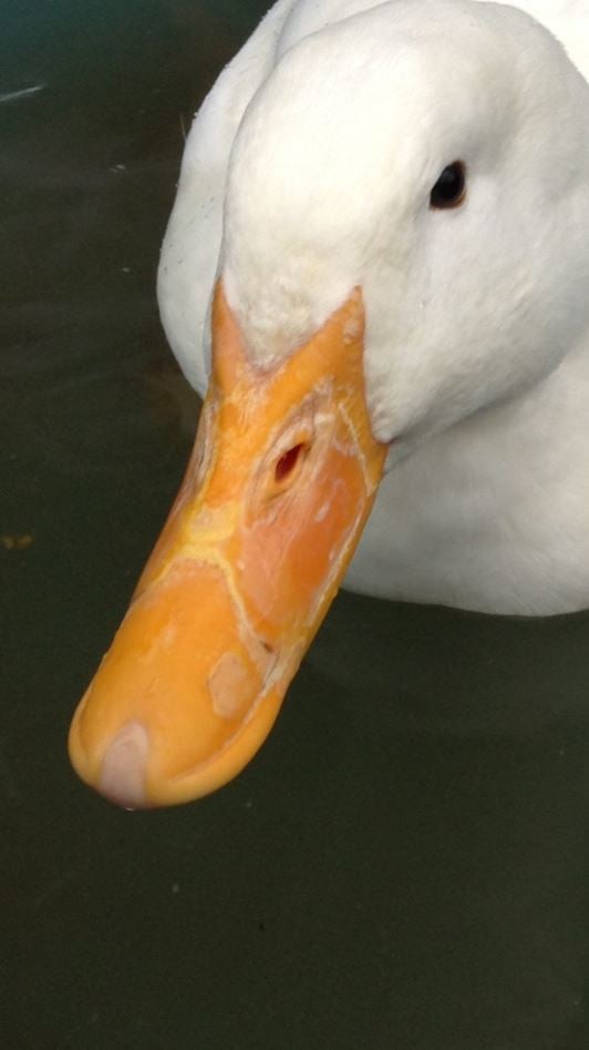 I went outside to check on my Duck Ginger when i noticed his bill was going a little weird, it wasn't like this in the morning but when it started raining a lot and he had spent a long time in the pool, i went out to check on him and noticed his bill had changed. Here are some pictures. As you can see, it wasn't like that before, plz help.
