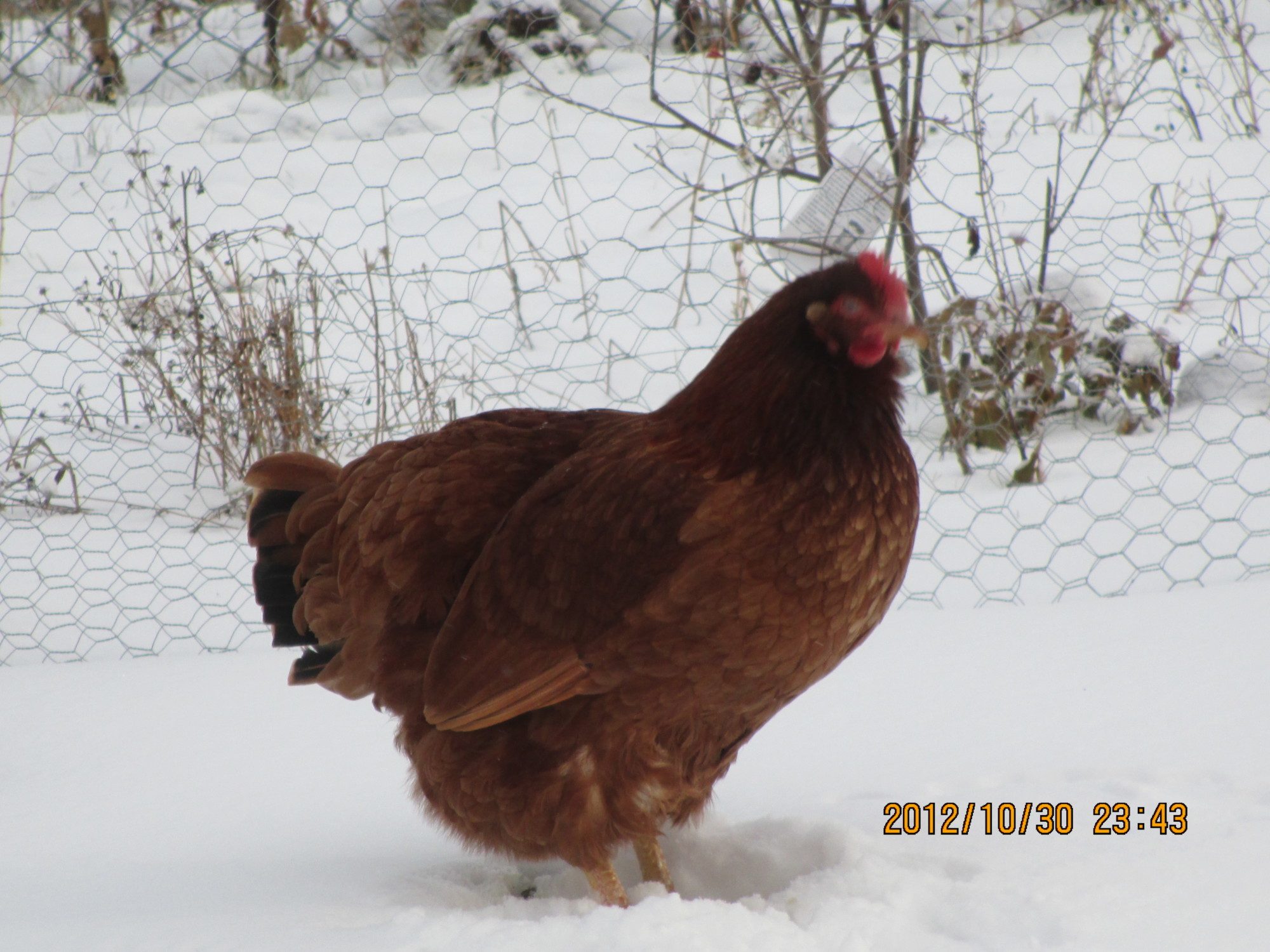 This year they're in a hoop coop. Tarp over the top, 4 ml plastic stapled over one whole end and partially over the other to keep wind out. I'm doing deep litter. Happy, healthy chickens. Frozen eggs? From time to time. We do our best to get out there early.