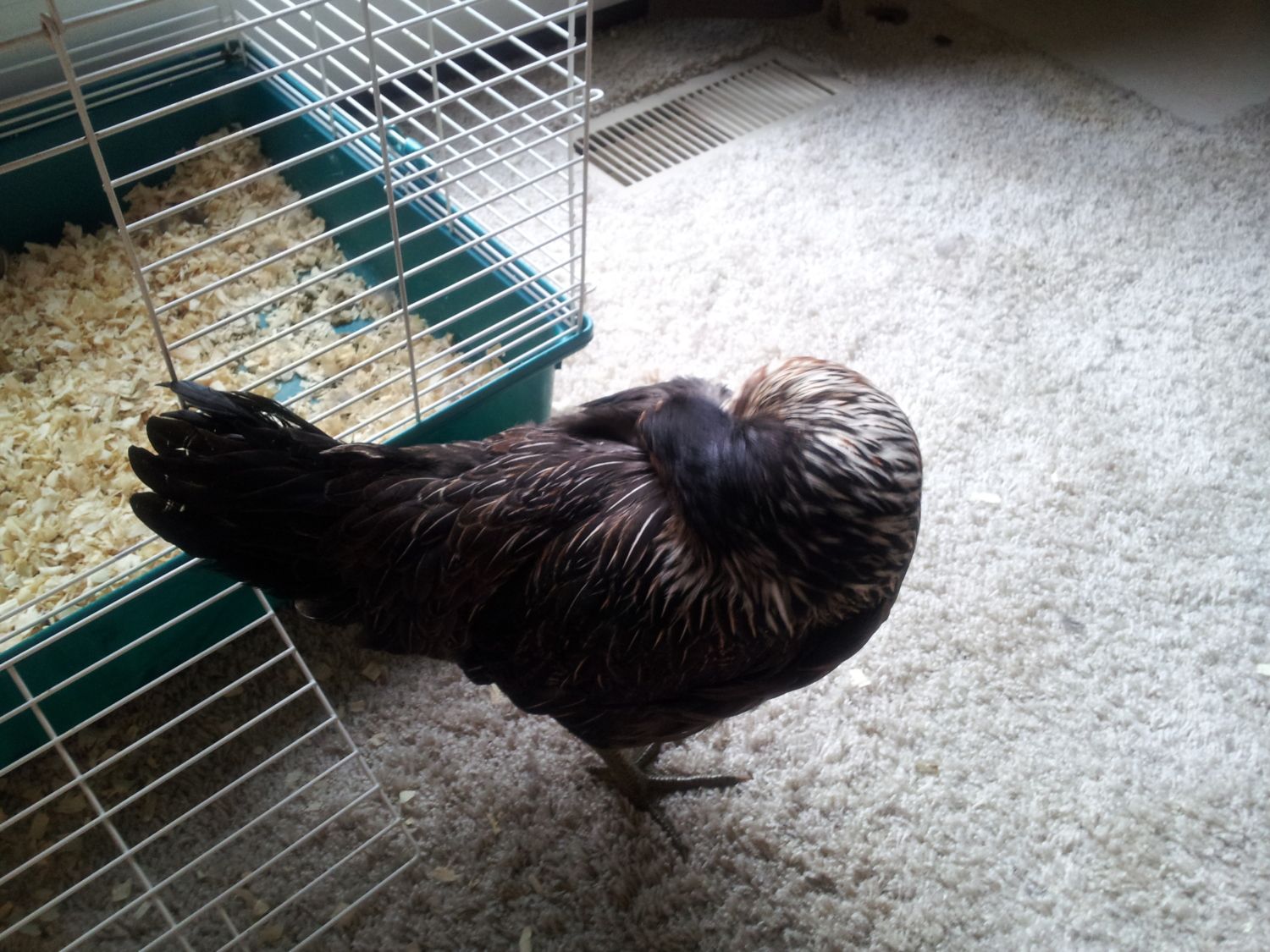 I need some advise. My pullet isn't any better, actually worse, she now has her head completely on her spine, looking at her tail, her neck/chest is way up in the air, she falls over on her back all the time and cannot get up. from falling and trying to get up she has scratched up the inside of one of her wings so bad that there are holes in her skin from her nails digging in and getting stuck in there and tearing it up. I have wrapped her up and made her a body like traction box that I put her in. Now her one leg isn't working properly or maybe its her little food, not sure. She seems smaller now than over a month ago when this started. She still eats and drinks on her own. I have been giving her prednisone, liquid vitamins, vitamin E and selenium as recommended, I keep starting the regime over and over. I even started giving her crushed vitamin B complex, since crook or wry neck is a vitamin def. I am really wondering if she may have mareks disease. I am having a really hard time deciding to put her down. She loves me, calls for me and purrs at me when I talk to her. She doesn't seem to be in pain, and I have treated her wounds on her wings. Help, should I just cull her....... and if I should, what is the best way so she doesn't feel any pain. This may sound silly, but I really do love her, but I don't want her to suffer. I started this thread about a month ago and she is no better, worse. help.....