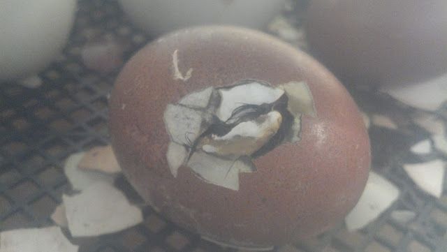 (Side note: we have one other egg in the incubator that just now on day 23 has pipped... I figured it was a dud until now. I'd think that something was wrong incubation wise (heat/humidity, etc) but we had 20 healthy chicks hatch on days 21-22.)