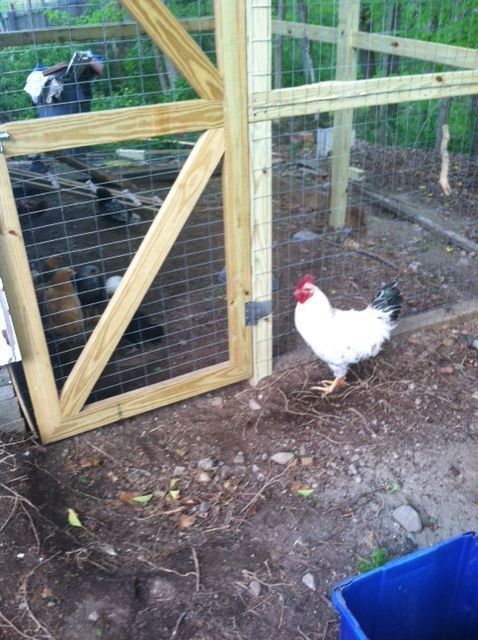 Flybybirds - He was aggressive with my smallest hen once; he chased her and pecked at her for a few seconds until she ran into the bushes. He challenged me twice, but the second time I ran back at him yelling and threw a piece of wood in his direction (not at him). He has not challenged me since! You're very right - he is most interested in what they are eating. He's learned that when I call "Here, chickie chickies!" it means treats, and he now comes running when they do! We were going to put the rooster down (our neighbors gave us their blessing, they don't care for it/him) but thanks to centrarchid's advice, we are going to give him a chance with our flock. Just need to build him a little home base first.