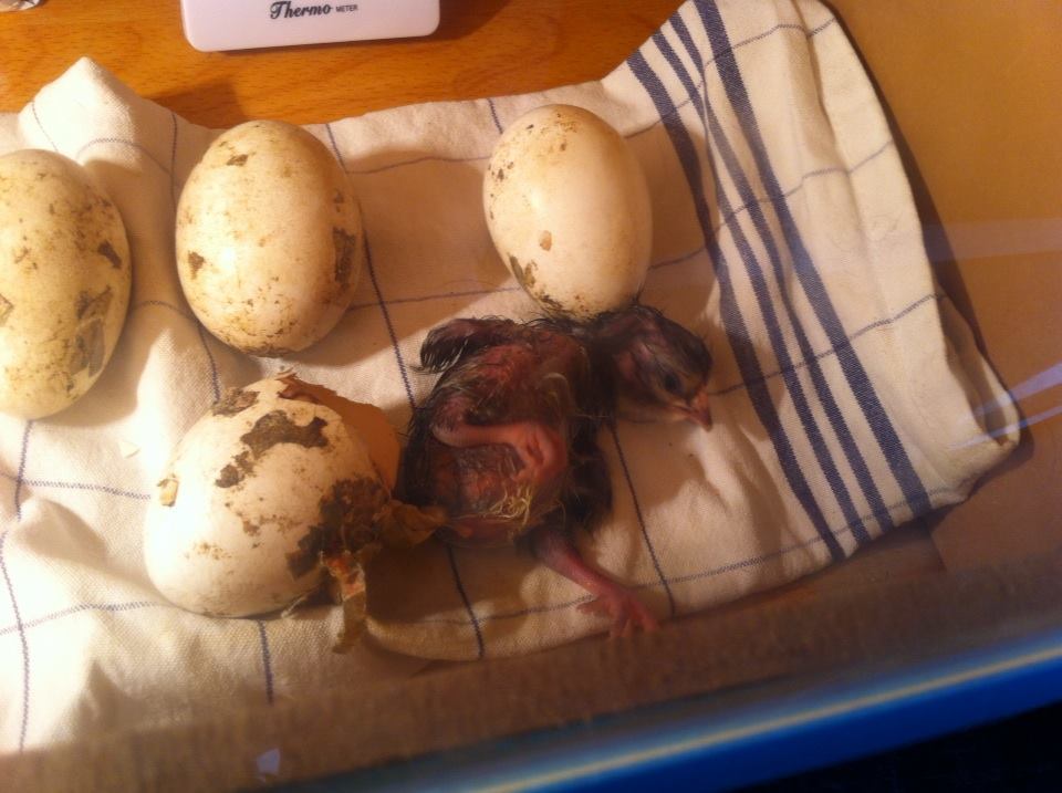 Hatched 2 successfully 2 days apart - she managed to steal some eggs after the ones we let her keep and ended up staggered as I hadn't marked the eggs she was keeping