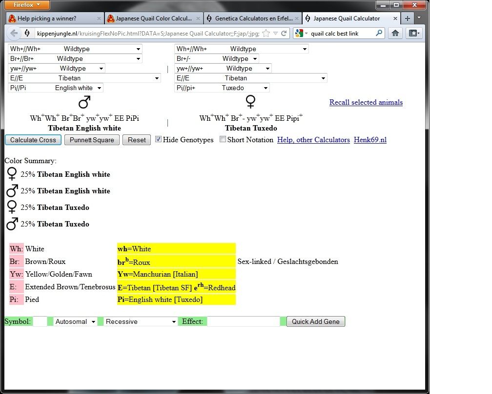 I like #1 and #3. Tibetan Tuxedo Coturnix Wh Wh Br+Br+ yw+yw+ EE Pipi+