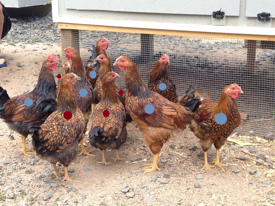 I took pic 2 and put red dots on the pullets I see, and blue ones on the cockerels.
