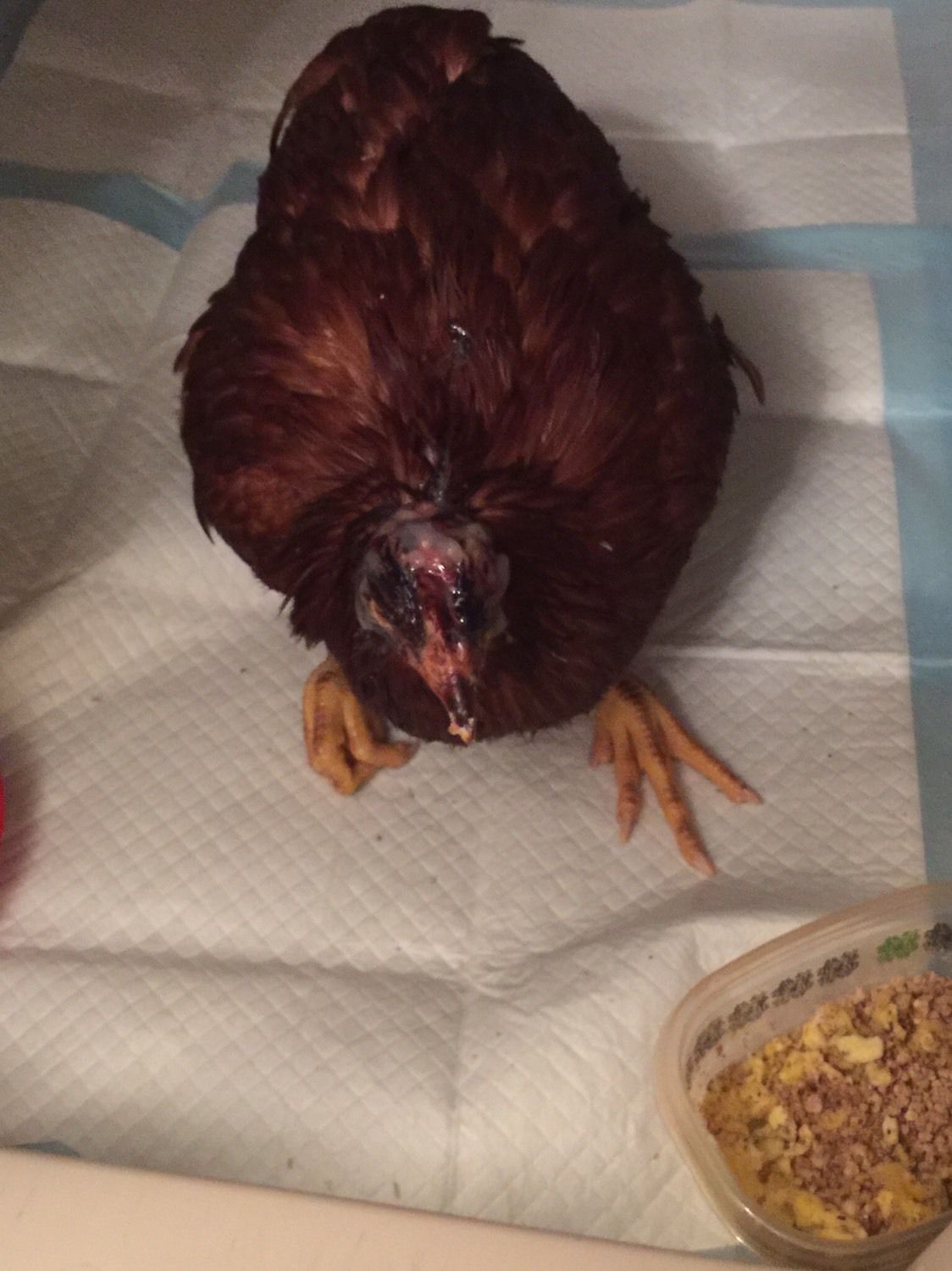 Came home for lunch on Monday and found one of my 14 week old pullets with a head injury in the run. I'm not sure what did it?? Anyways I thought she was dead and I went to pick her up to bury her and she moved!! So I put her in a cat carrier and brought her in the house. I had to go back to work and I really thought she would be gone by the time I got home. Well she wasn't so I cleaned her up the best I could and put neosporin on her head. I did get her to take some water out of a syringe. Again I didn't think she would make it through the night but I put her in a bigger dog crate. Well yesterday morning she was still with us. Again I applied neosporin to her head. I got her to take more water I also added nutra drench and got her to eat some scrambled eggs. She was sitting up and I was really hopeful that she was going to be fine. But now she is unable to sit on her legs, can't stand at all and really just seems to flop around. I think she may have some brain damage or something? I don't have the heart to cull her. I have never done that before. I've only had chickens for 1 year. Any advise???? She will eat and drink with assistance.
