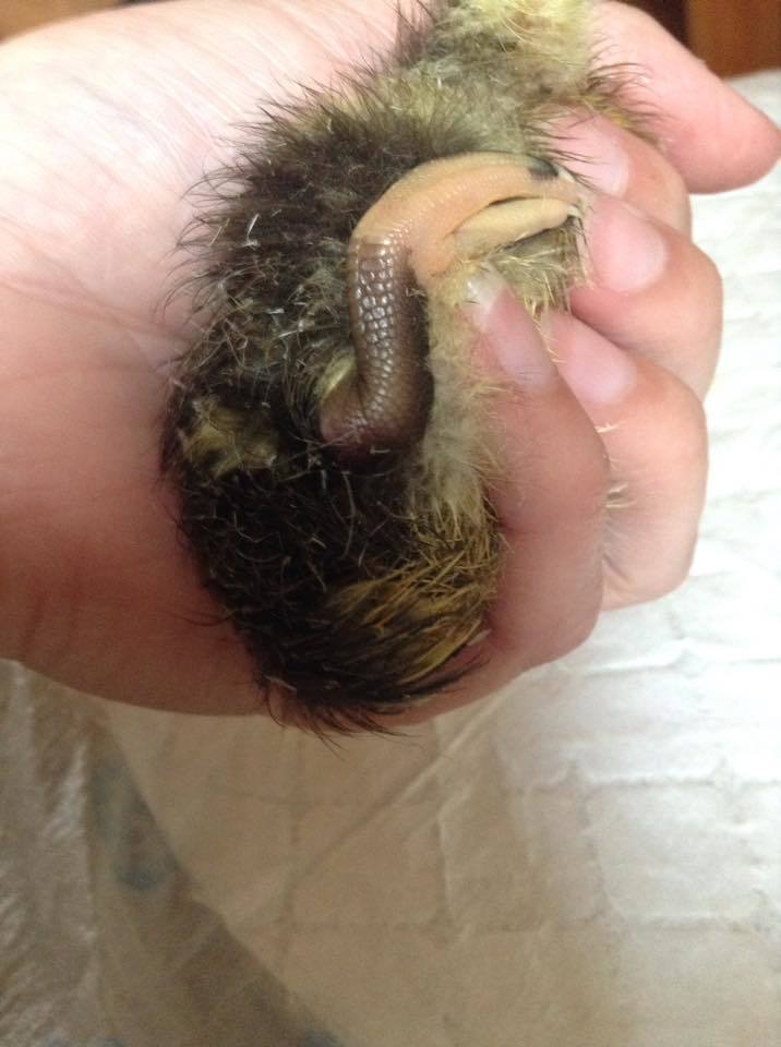 The best way to tape it is using a figure 8 around the back of the knee above and below the joint with the center of the 8 in front of the joint. Be careful the tape is not too tight as it is just to keep the joint in position during weight bearing. If you get a nice bend but the duckling is still dragging it behind, you can use a large rubber band to help pull it forward while giving it a range of motion in the hip. The hip joint needs to move freely and the ankle joint needs to move freely so do not tape them, just restrict the range if necessary to allow the duckling the ability to walk and swim without the leg being totally useless. Hydrotherapy is very important to get the best results. If the leg is turned out you can also use a rubber band to pull the leg in under it in a supportive position that will hold the duckling's weight. You may have to make small adjustments using pressure to position the leg correctly if it is already getting stiff. The sooner you can correct the leg the better but the duck will most likely have a permanent limp. As long as it can use the leg for balance and propulsion it should survive and get around fine.