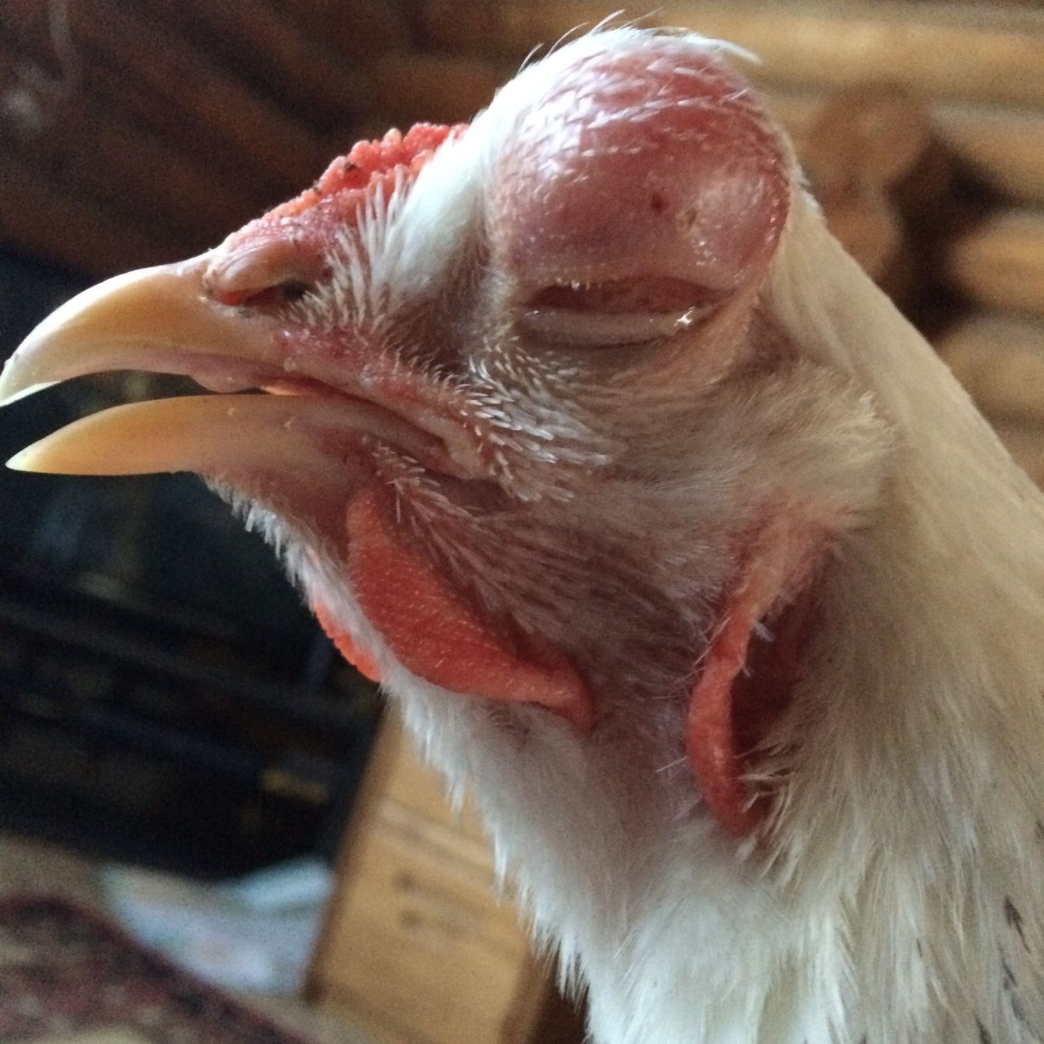 She's a nine-month-old Buff Orpington. Two days ago we noticed a marble-sized lump (abscess?) above her eye. Not sure if we should lance. Moved her to our spare room. Applied Terramycin to the eye. She's eating and drinking. Like most animal lovers we hurt when they hurt. Any guidance would be appreciated.