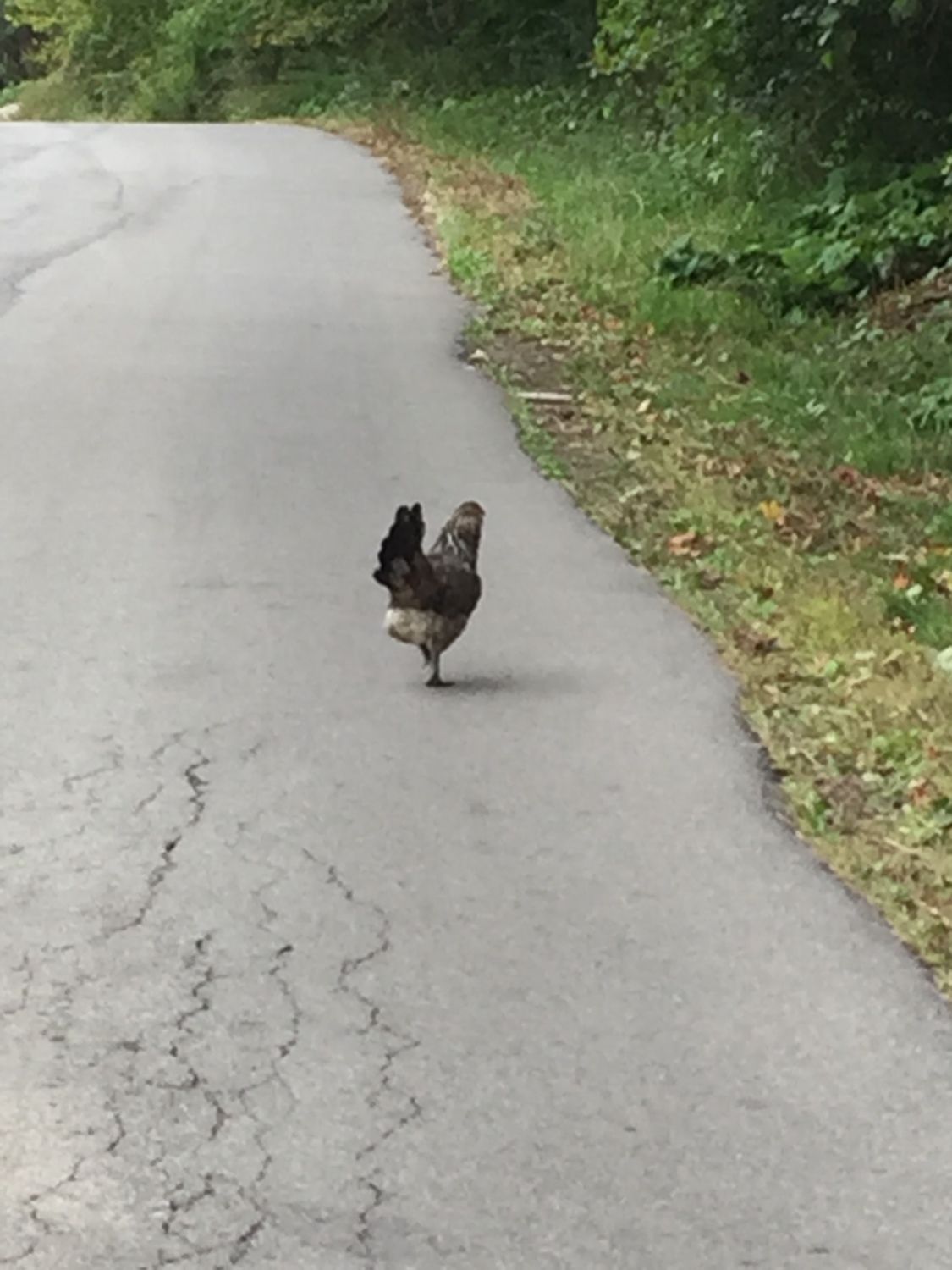 On my drive home from work the other night I came across 2 chickens roaming the street (in a forest-like area). I stopped my truck to have a look at them. Im use to seeing wild turkeys around my place but can honestly say I've never seen "wild chickens" I have a hunch that someone in the area had there chickens run away or they have decided to get rid of them in a poor manner.