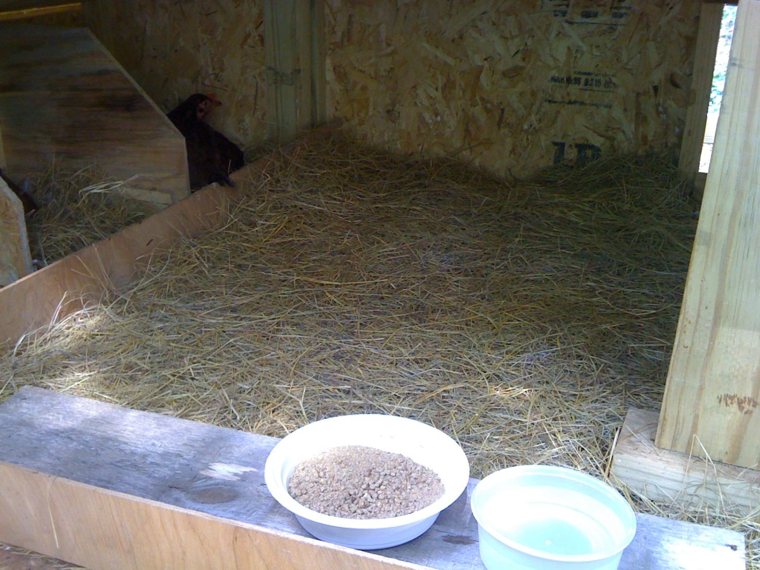 which to me maybe to difficult for the chick to handle, so what I did was add some food and water in the coop itself as shown in the picture below.