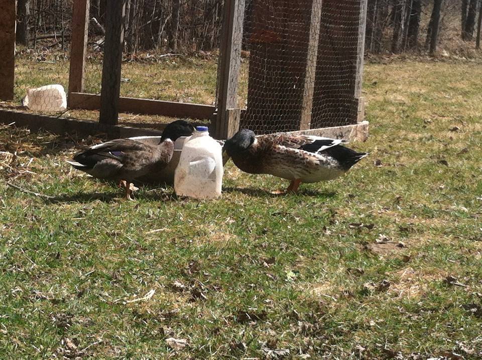 So I've had these ducks for a few months now. I have too many drakes, so I am going to try to think them out a bit by selling one hen and two drakes all together for I'm thinking $35. It will be 3 of the mallard marked ducks that I am selling, but the person I got them from had NO clue on breed, and every time I think I have it figured out, I see something that makes me second guess. So I thought the mallard marked ones were Rouen's but they are rather small, but they don't quite have the look of Call ducks too me...could they be poor quality calls? Rouen/Runner crosses? I need a good guess so I can sell them. Then I *think* the light brown/fawn colored duck is a Buff and that the all gray drake is a Buff drake...they are not large enough to be Khaki Campbell's and I also don't think dark enough...but I think they are too big to be Calls...but...and then the Black and white...Ancona? and the Large Drake pictured drinking with just one other duck...Silver Appleyard Drake? Thanks for any help! This has been driving me crazy.