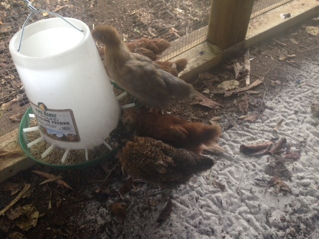 2. How much to feed? They are eating crumbles in a 7lb feeder. I have read "feed all they want". But they empty the feeder almost immediately (without eating the food), so keeping it full would be futile. I know they scratch around for their scattered food. So is there a volume or weight of food per hen as a guideline?