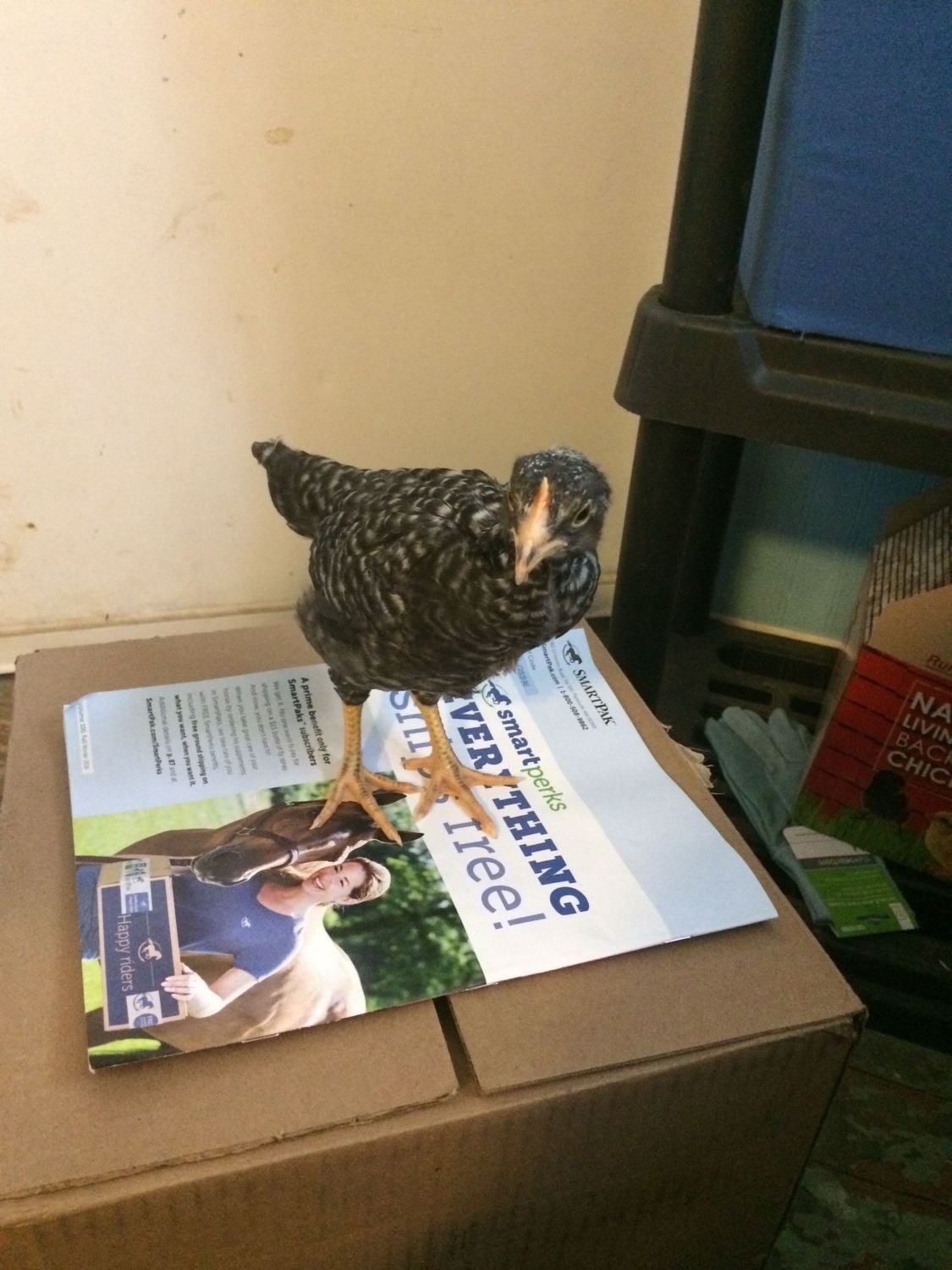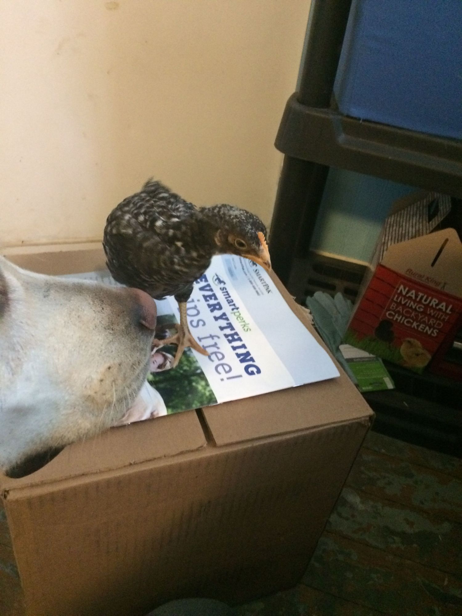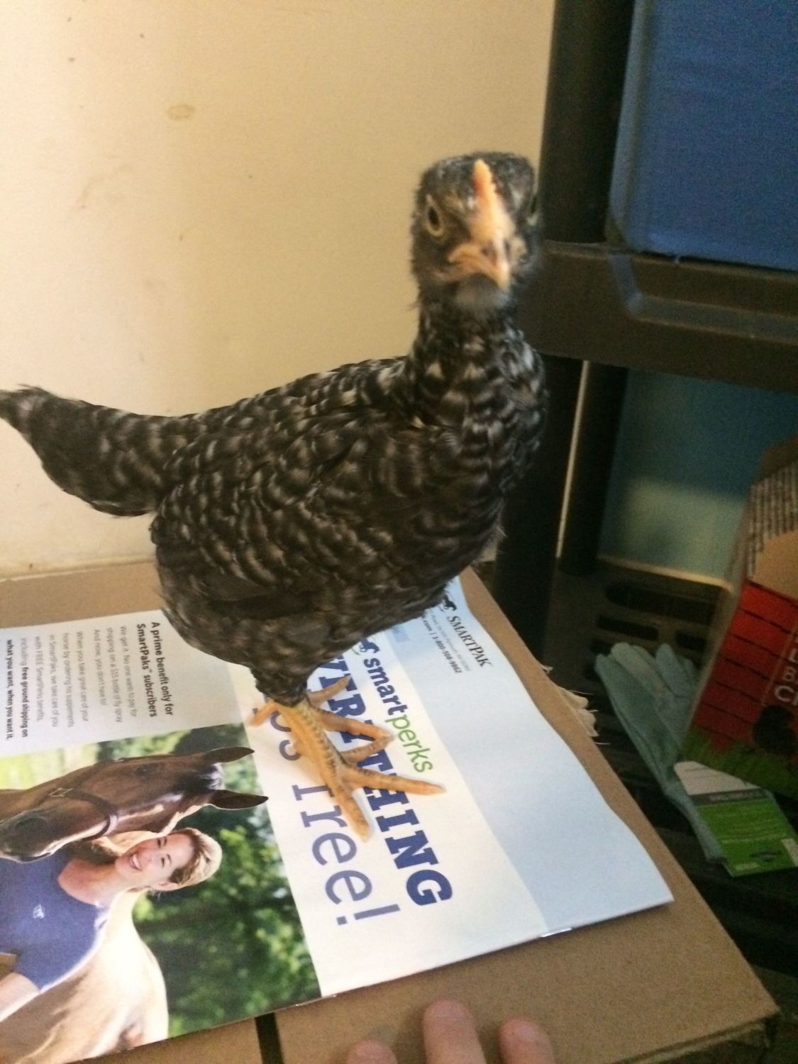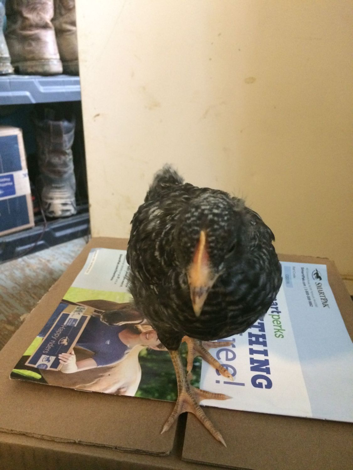 Chick 1. Barred Rock. Sorry for my dogs nose-he loves his chickies lol