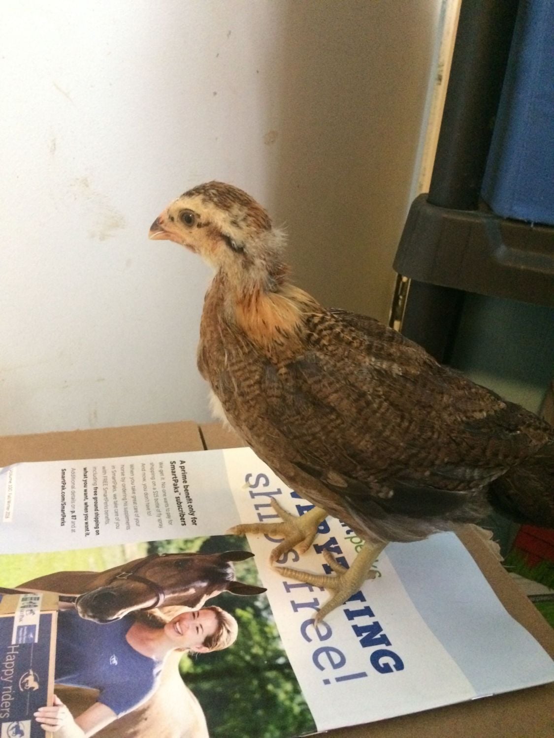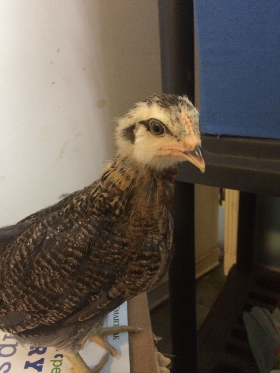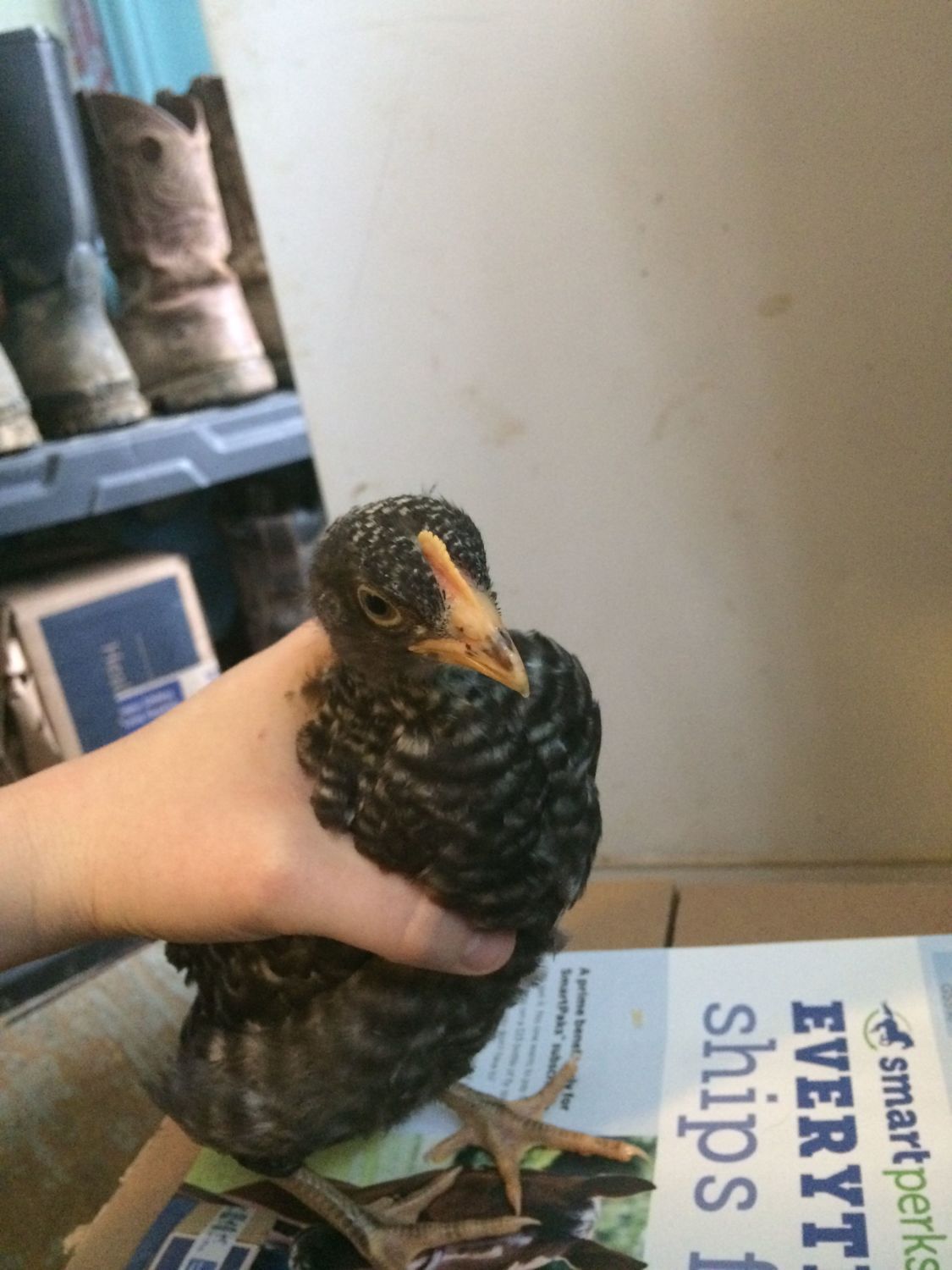chick 2-Barred Rock. Cannot get this one to sit still for anything.