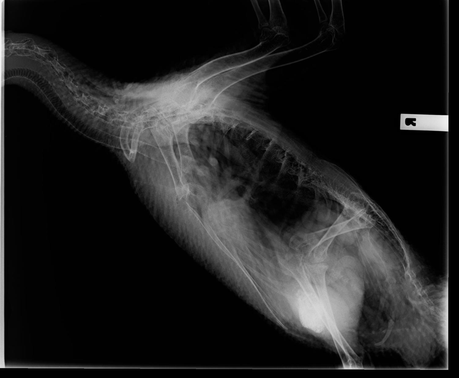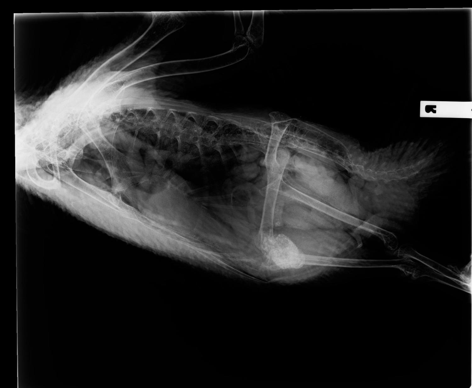 My 3yr old Muscovy Drake Rubber has been very quiet and lethargic for the past couple of days, he has been hiding himself in the spare room which is very unusual normally he prefers to spend the day outside which the other ducks and he only comes in at night, his not talking to me like he usually does and he has been pooping mostly water since Thursday in some cases yesterday only water although he did do a more normal poop today after I gave him some peas. He has also been panting today although he has plenty of water and its not hot. I took him to the local vet as I was worried about heavy metal poisoning. I saw 2 different vets the first one told me he had a temperature and the only thing they could do was take an x-ray to see if he had any metal in his stomach and that they didn't do blood tests to check for heavy metal poisoning. The 2nd vet told me that he didn't have a temperature and said he could see no metal in his stomach but the was something there that could either be something he was trying to pass or it could be a tumour he didn't know as he didn't know anything about ducks. I was told to give him some antibiotics its called Bactrim and is sulfamethoxazole and trimethoprim at 1ml for every kg twice a day (he is 5kg) just in case he has a bacterial infection. The closest avian vet is 3 1/2 hours away and I don't have a car if( I did I would take him) although I have emailed them I'm not hopeful of a reply. The local vets have no idea about ducks (as they told me in those exact words after I paid them $200 for the privilege) and are unwilling to look in to it further. Rubber is very much my baby and I am desperate to make sure he is ok. I was wondering if anyone has any ideas on what his problem could be. I have included the x-ray pictures (that my husband was smart enough to get them to email to us) incase anyone can make sense of them for me. The vet didn't know what he was looking at and said so. Any help would be very much appreciated.