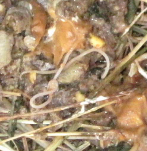 As if that wasn't enough! I go to put the hen back on the roost where she was sitting and there's worms in last night's poo. Eww, I'm officially freaked out. So much for ivermectin not killing internal parasites, since it was all they had that could have brought the worms out.