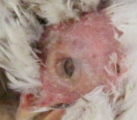 Hen with terrible mites and eye worms? my camera suks.