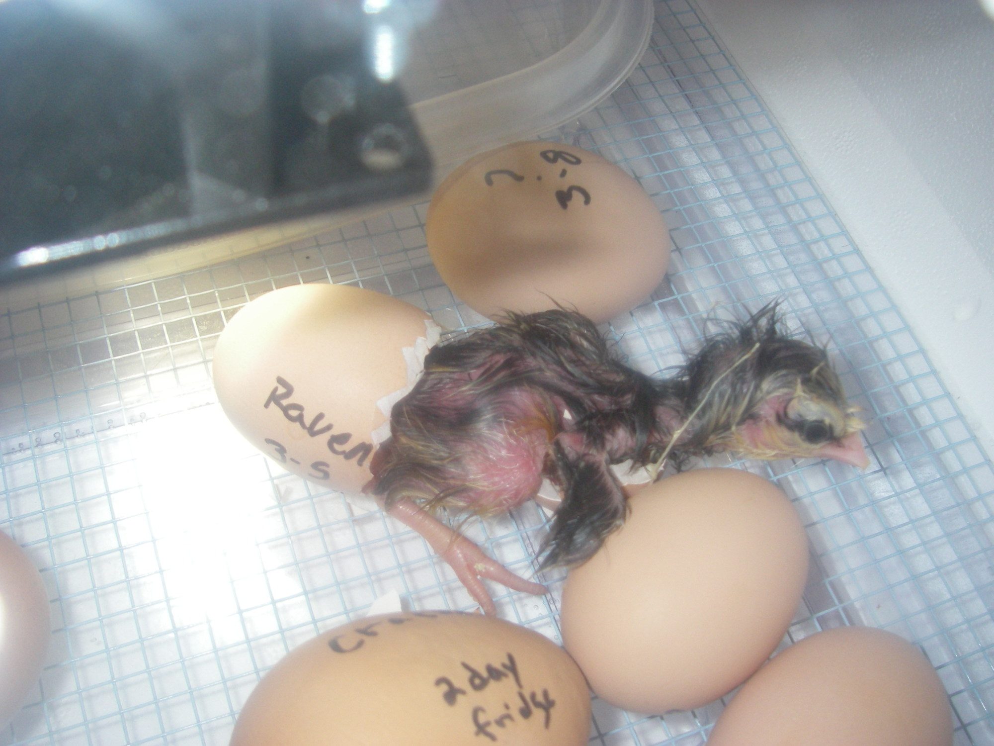 Theres another egg in there pipping, I saw a peice of shell almost come off from the pip point. Im hoping both their chirping will encourage them both to get out. I think he is tired at the moment. hes not moving or pipping, but Im sure hes still alive, maybe taking a little nap.