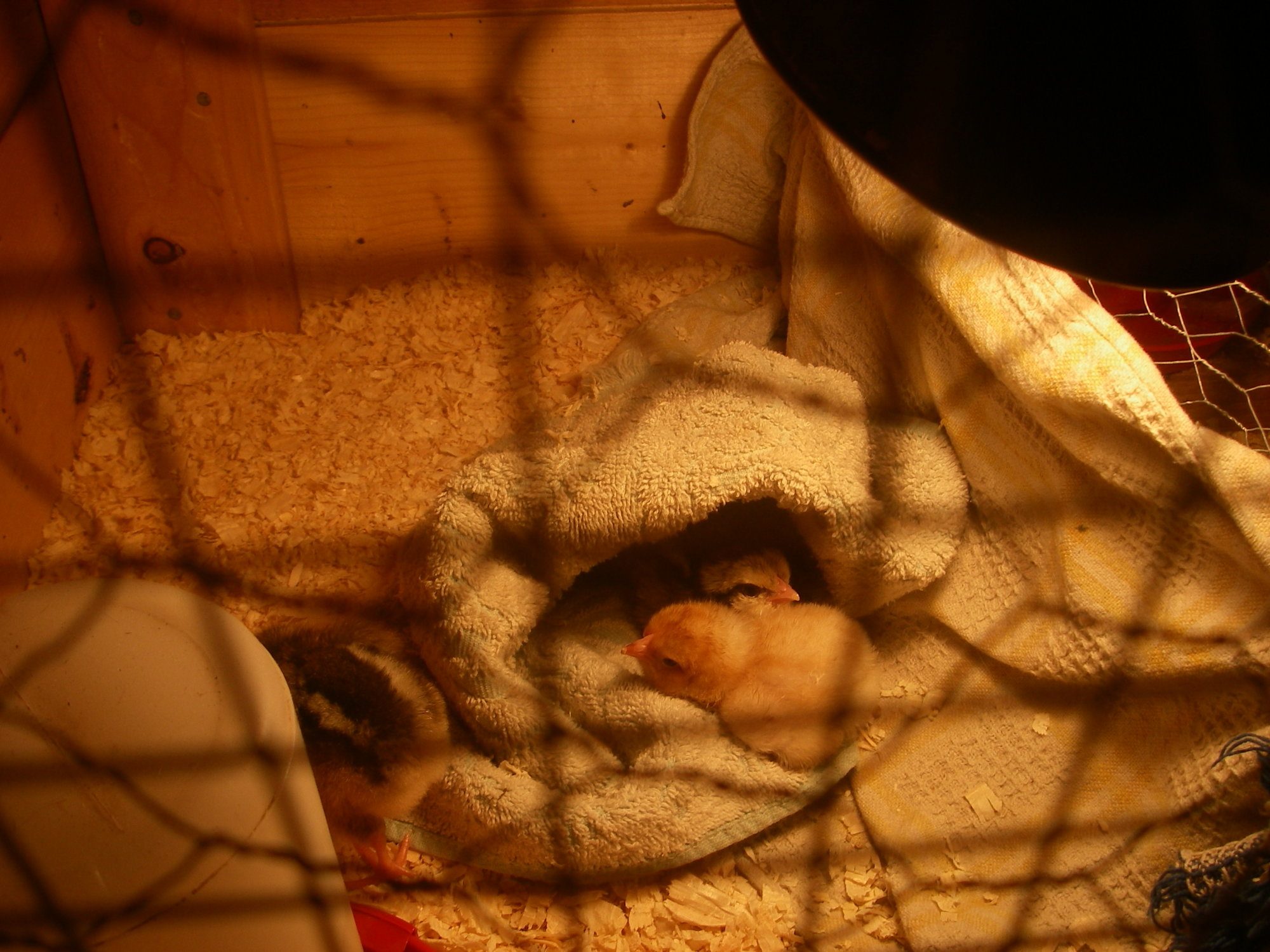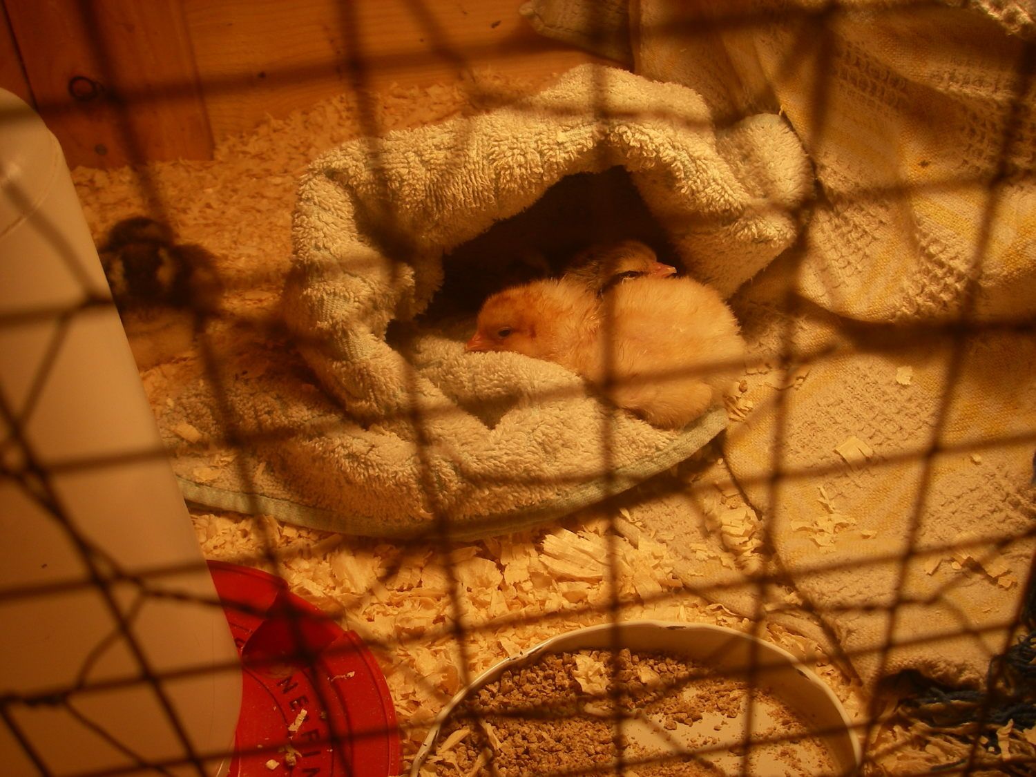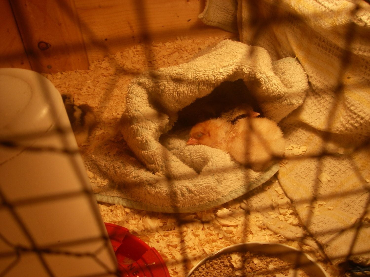 I have a dish cloth folded so it makes a nice little cave for them to crawl into. The yellow chick (broken egg) keeps flipping over. Its going to be a loooong night.