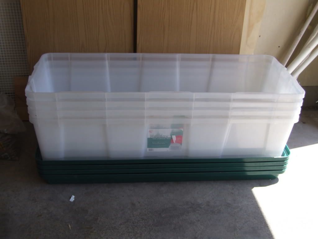 These are the types of large xmas tree containers I use. Found at some stores during the holidays. If you order online, the postage is more than the cost of the tubs.