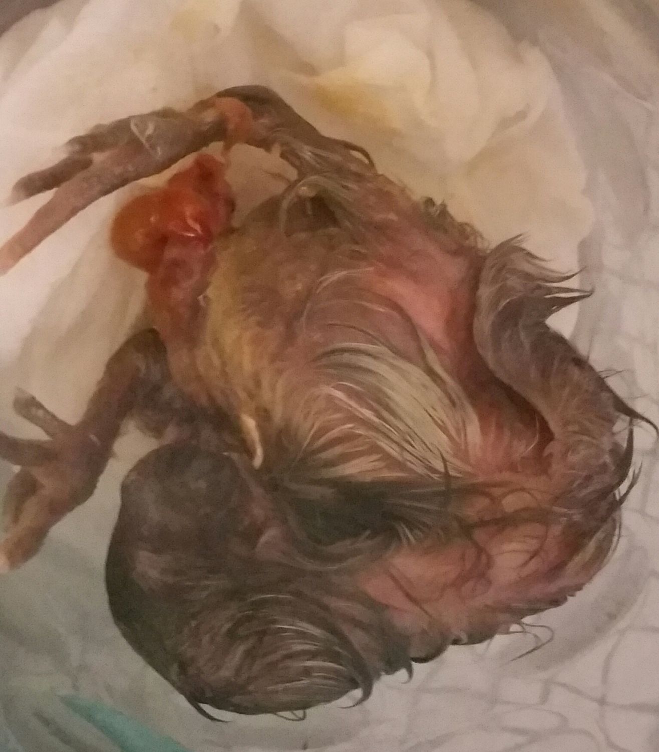 there are many things that can go wrong in incubation, the chick could have pulled it out by itselfI lost it last night before my last check in at 9 she or she was no longer moving and still :-( temp was good rag was still moist and all looked ok. I just could not push the intestin in :-( I am afraid for the rest. Read a post that it's cuz I did not turn enough or temp changes. I have a Turner and kept it at 99.5. Super hard to see this. Set 46 eggs. I have lost 1 and another the yellow one is doing OK but has that title thing hanging too a lot smaller. Just due to the fact I have had 3 so far an still waiting on 20 makes me think that yes I did something wrong during the incubation