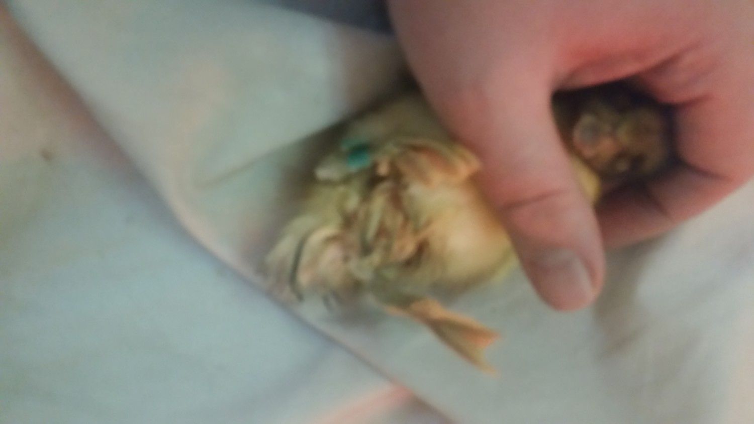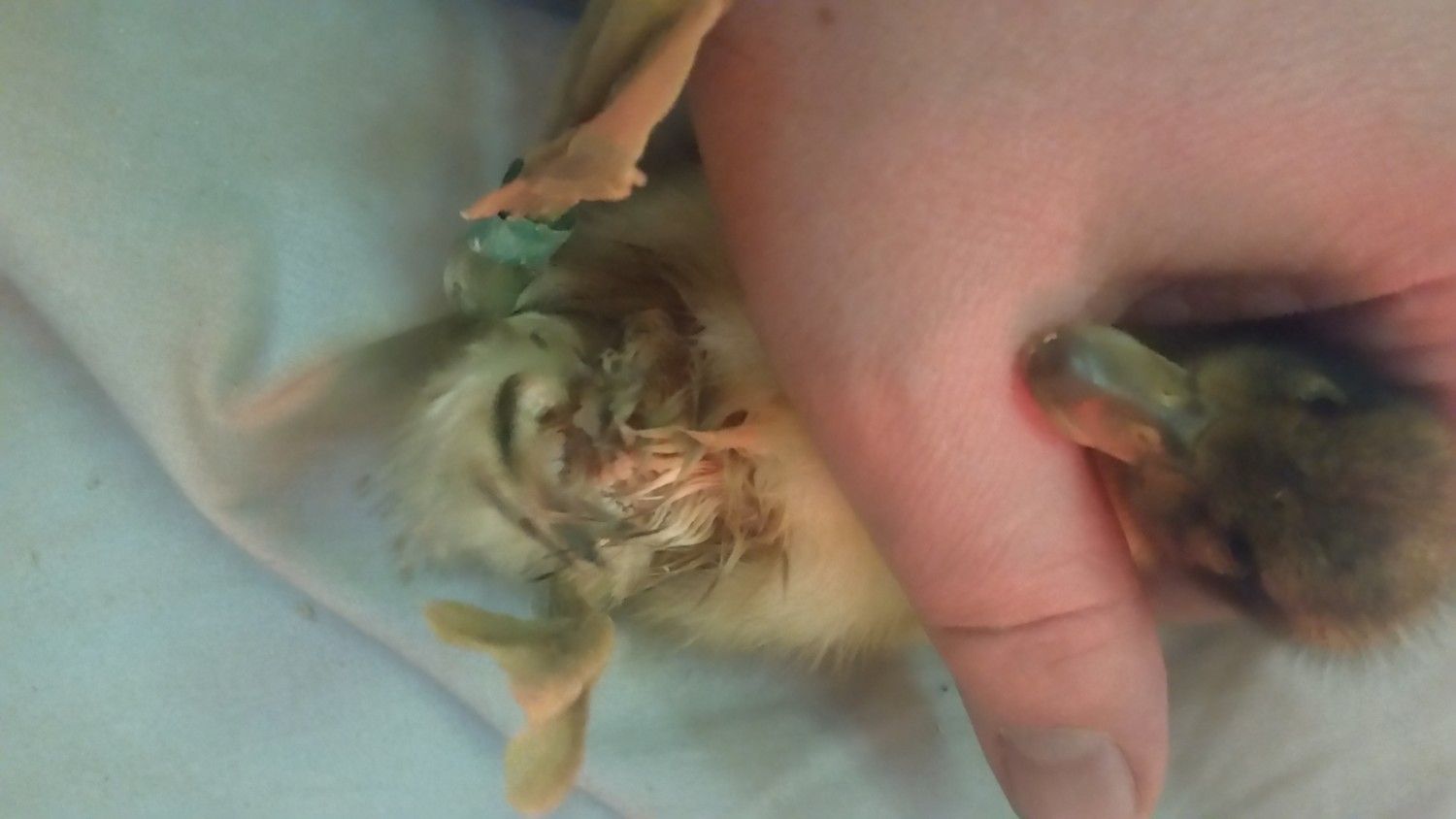 I got this Welsh Harlequin from Metzers thursday so she's 5 days old and just an hour ago I picked her up and noticed her bottom is all matted and wet with hair missing. Here's a picture: